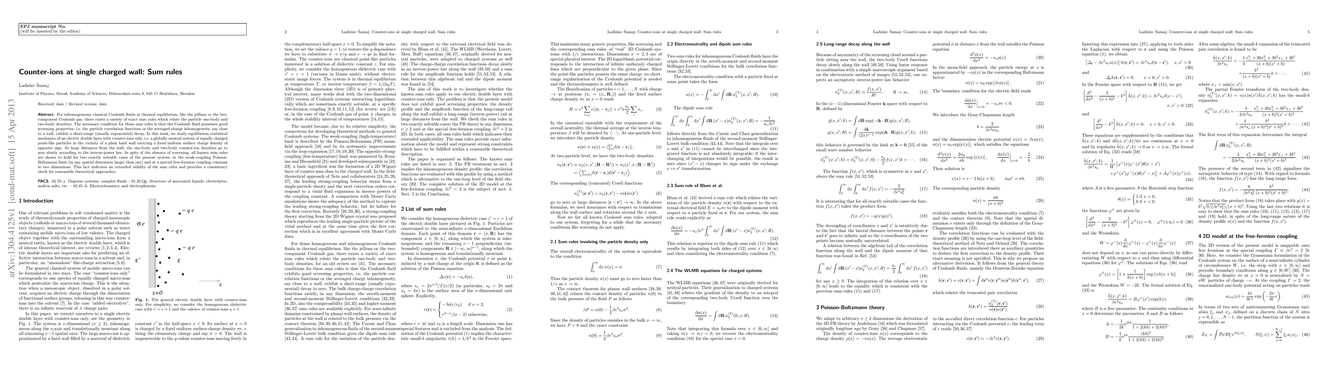 For inhomogeneous classical Coulomb fluids in thermal equilibrium, like the jellium or the two-component Coulomb gas, there exists a variety of exact sum rules which relate the particle one-body and two-body densities. The necessary condition for these sum rules is that the Coulomb fluid possesses good screening properties, i.e. the particle correlation functions or the averaged charge inhomogeneity, say close to a wall, exhibit a short-range (usually exponential) decay. In this work, we study equilibrium statistical mechanics of an electric double layer with counter-ions only, i.e. a globally neutral system of equally charged point-like particles in the vicinity of a plain hard wall carrying a fixed uniform surface charge density of opposite sign. At large distances from the wall, the one-body and two-body counter-ion densities go to zero slowly according to the inverse-power law. In spite of the absence of screening, all known sum rules are shown to hold for two exactly solvable cases of the present system: in the weak-coupling Poisson-Boltzmann limit (in any spatial dimension larger than one) and at a special free-fermion coupling constant in two dimensions. This fact indicates an extended validity of the sum rules and provides a consistency check for reasonable theoretical approaches.