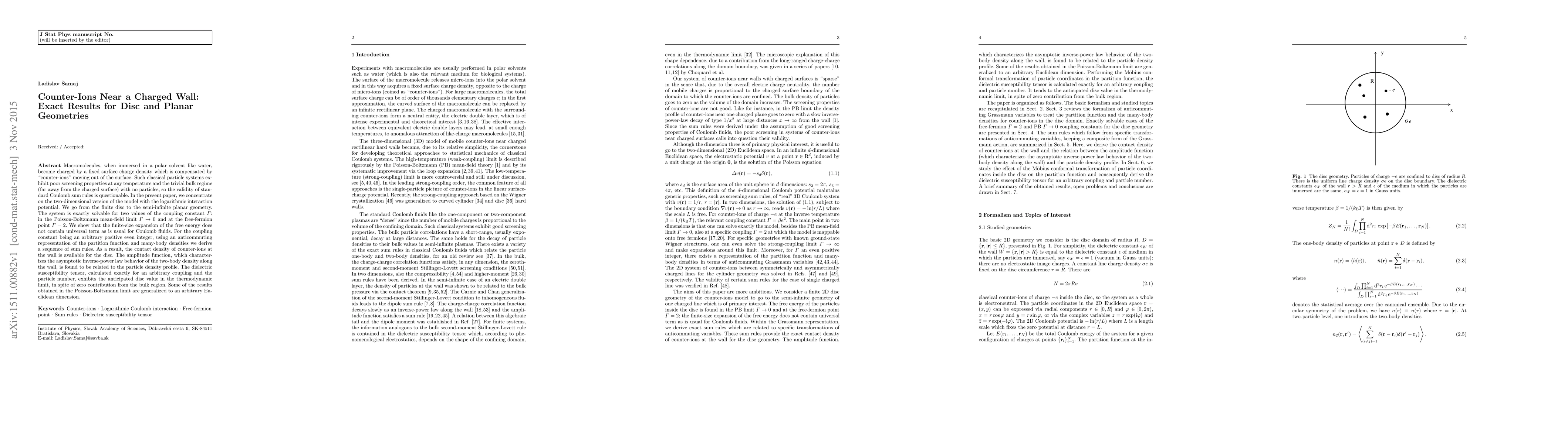 Macromolecules, when immersed in a polar solvent like water, become charged by a fixed surface charge density which is compensated by ``counter-ions'' moving out of the surface. Such classical particle systems exhibit poor screening properties at any temperature and the trivial bulk regime (far away from the charged surface) with no particles, so the validity of standard Coulomb sum rules is questionable. In the present paper, we concentrate on the two-dimensional version of the model with the logarithmic interaction potential. We go from the finite disc to the semi-infinite planar geometry. The system is exactly solvable for two values of the coupling constant $\Gamma$: in the Poisson-Boltzmann mean-field limit $\Gamma\to 0$ and at the free-fermion point $\Gamma=2$. We show that the finite-size expansion of the free energy does not contain universal term as is usual for Coulomb fluids. For the coupling constant being an arbitrary positive even integer, using an anticommuting representation of the partition function and many-body densities we derive a sequence of sum rules. As a result, the contact density of counter-ions at the wall is available for the disc. The amplitude function, which characterizes the asymptotic inverse-power law behavior of the two-body density along the wall, is found to be related to the particle density profile. The dielectric susceptibility tensor, calculated exactly for an arbitrary coupling and the particle number, exhibits the anticipated disc value in the thermodynamic limit, in spite of zero contribution from the bulk region. Some of the results obtained in the Poisson-Boltzmann limit are generalized to an arbitrary Euclidean dimension.