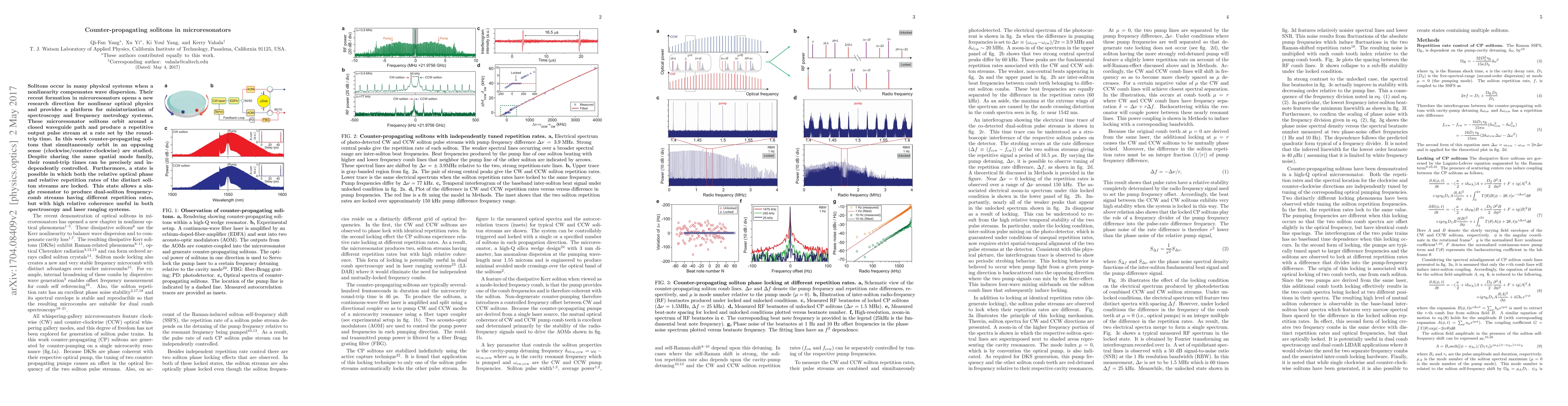 This research investigates counter-propagating solitons in microresonators, demonstrating their ability to orbit in opposite directions while maintaining precise control over their round-trip times. The study reveals a coherent state where dual soliton streams can be generated with different repetition rates, enhancing applications in spectroscopy and laser ranging.