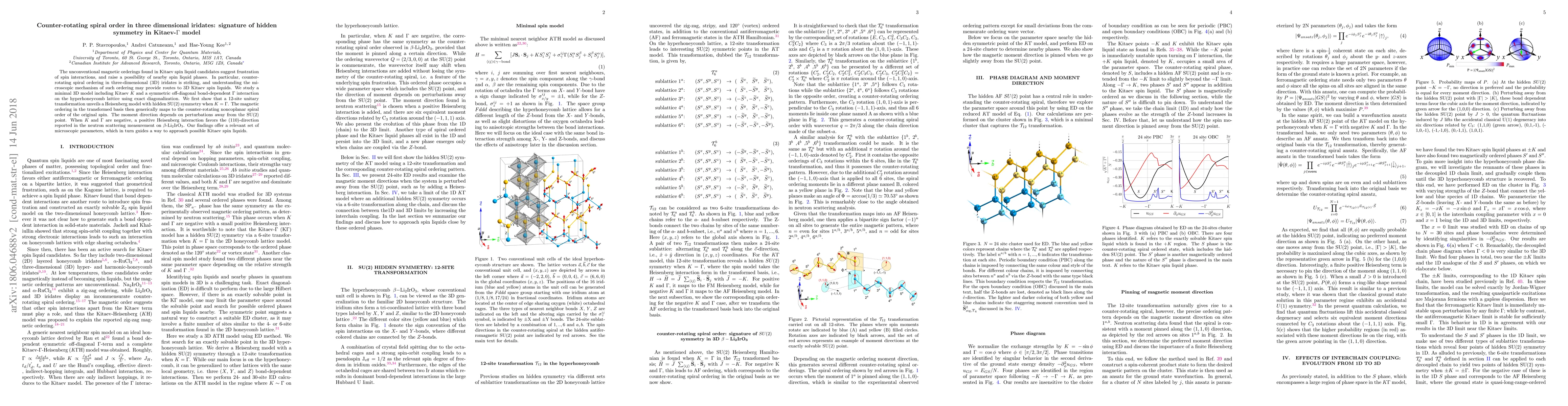 This paper explores the counter-rotating spiral order in 3D iridates, revealing hidden SU(2) symmetry in the Kitaev-$\Gamma$ model. It demonstrates that a 12-site unitary transformation uncovers a Heisenberg model, leading to the counter-rotating spiral order, and suggests a pathway to understanding 3D Kitaev spin liquids.