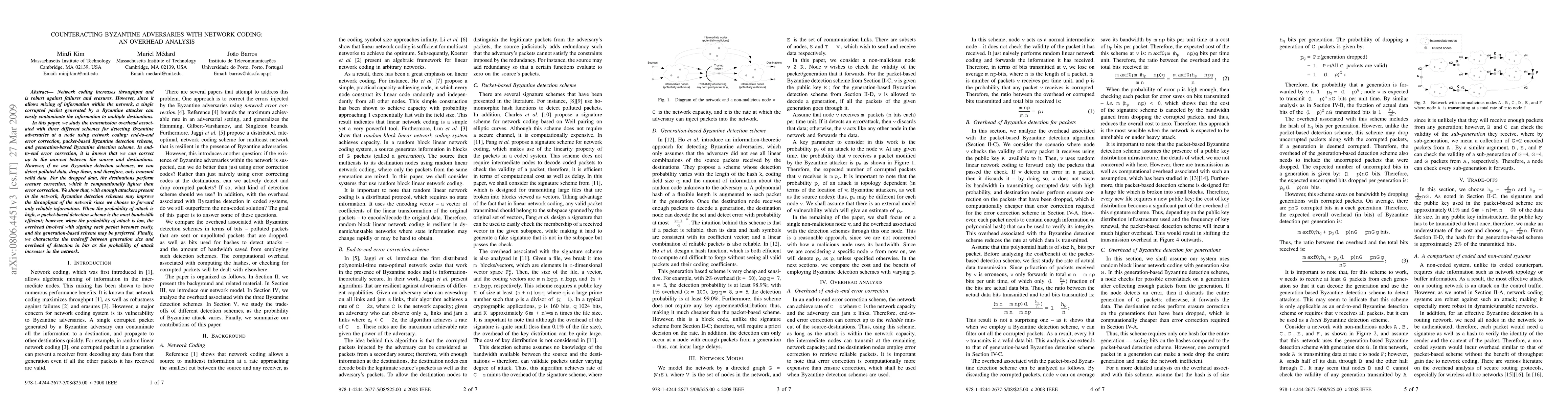 Network coding schemes can improve network throughput by detecting and dropping corrupted packets, but also incur additional overhead. This study analyzes the tradeoff between detection schemes' benefits and costs in various attack scenarios.