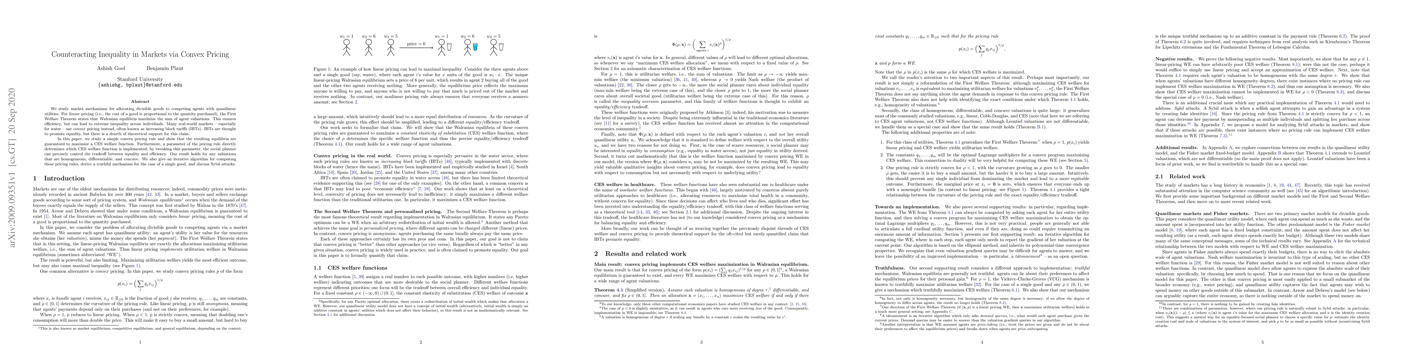 We study market mechanisms for allocating divisible goods to competing agents with quasilinear utilities. For \emph{linear} pricing (i.e., the cost of a good is proportional to the quantity purchased), the First Welfare Theorem states that Walrasian equilibria maximize the sum of agent valuations. This ensures efficiency, but can lead to extreme inequality across individuals. Many real-world markets -- especially for water -- use \emph{convex} pricing instead, often known as increasing block tariffs (IBTs). IBTs are thought to promote equality, but there is a dearth of theoretical support for this claim. In this paper, we study a simple convex pricing rule and show that the resulting equilibria are guaranteed to maximize a CES welfare function. Furthermore, a parameter of the pricing rule directly determines which CES welfare function is implemented; by tweaking this parameter, the social planner can precisely control the tradeoff between equality and efficiency. Our result holds for any valuations that are homogeneous, differentiable, and concave. We also give an iterative algorithm for computing these pricing rules, derive a truthful mechanism for the case of a single good, and discuss Sybil attacks.
