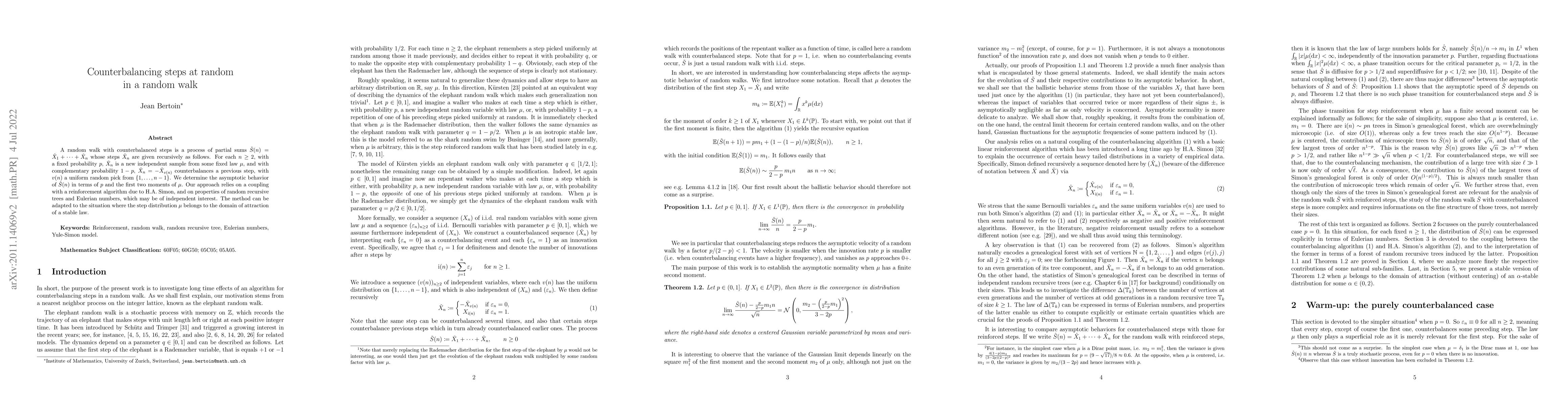 This paper investigates the asymptotic behavior of a random walk where steps can be counterbalanced with a fixed probability, using coupling techniques and properties of random recursive trees. The analysis extends to cases where the step distribution follows a stable law.