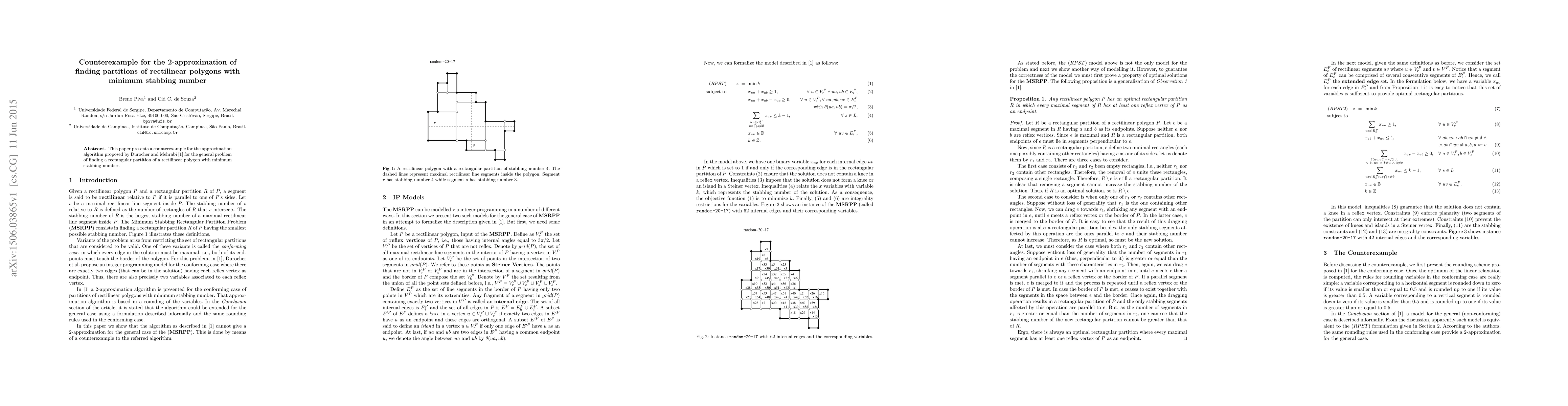 This paper presents a counterexample for the approximation algorithm proposed by Durocher and Mehrabi [1] for the general problem of finding a rectangular partition of a rectilinear polygon with minimum stabbing number.
