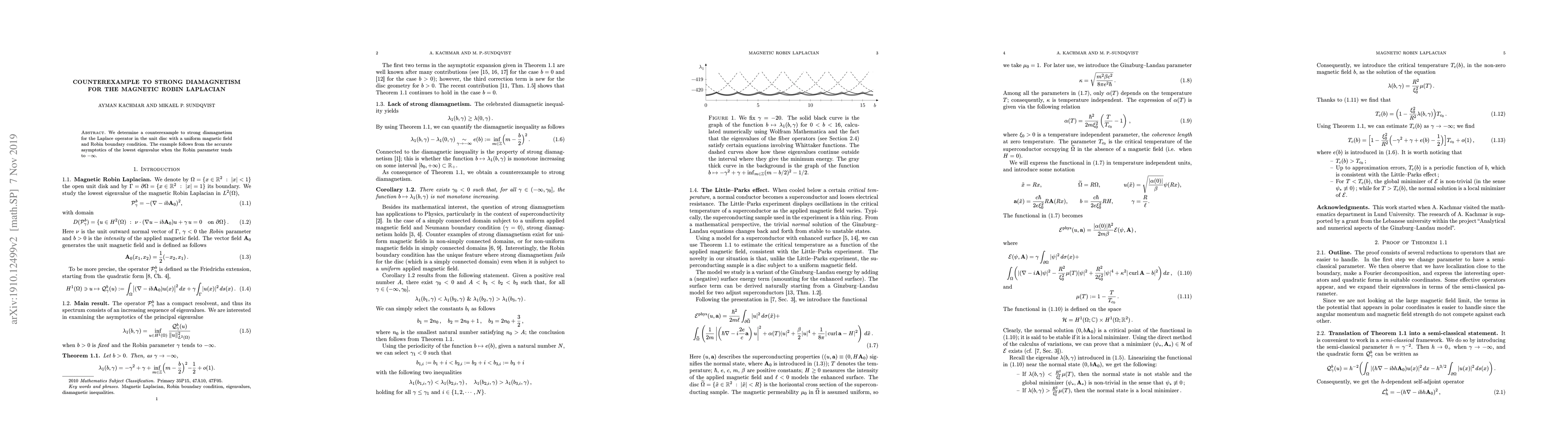 Summary: This paper presents a counterexample disproving strong diamagnetism for the magnetic Robin Laplacian in a unit disc under a uniform magnetic field and Robin boundary conditions, derived from the precise asymptotic behavior of the lowest eigenvalue as the Robin parameter approaches negative infinity.