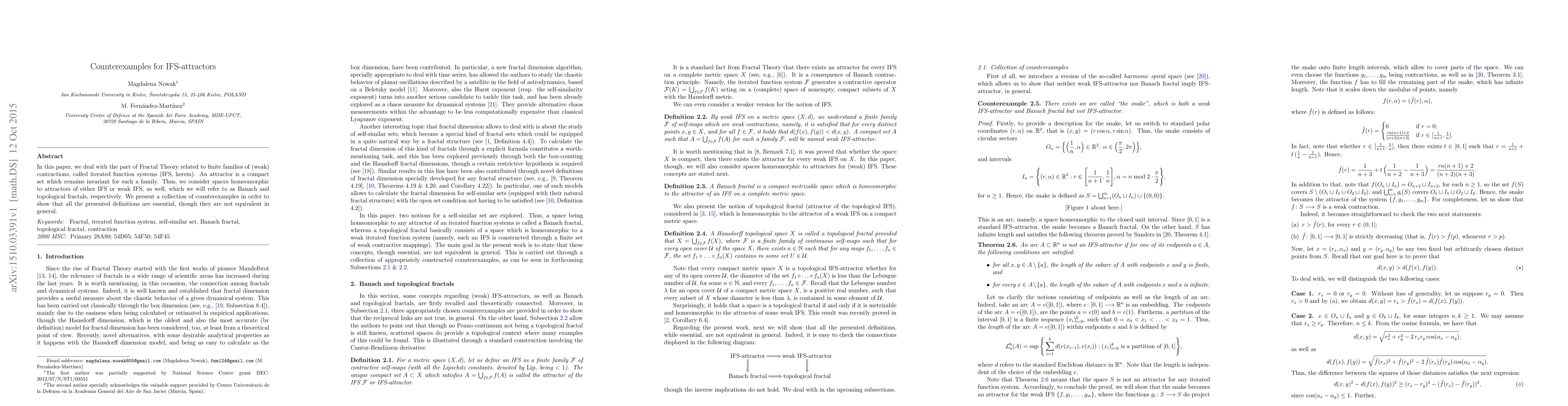 This paper explores iterated function systems (IFS) and presents counterexamples to demonstrate that various definitions of fractals, such as Banach and topological fractals, are essential and not interchangeable. The findings highlight the nuanced distinctions between these definitions in fractal theory.