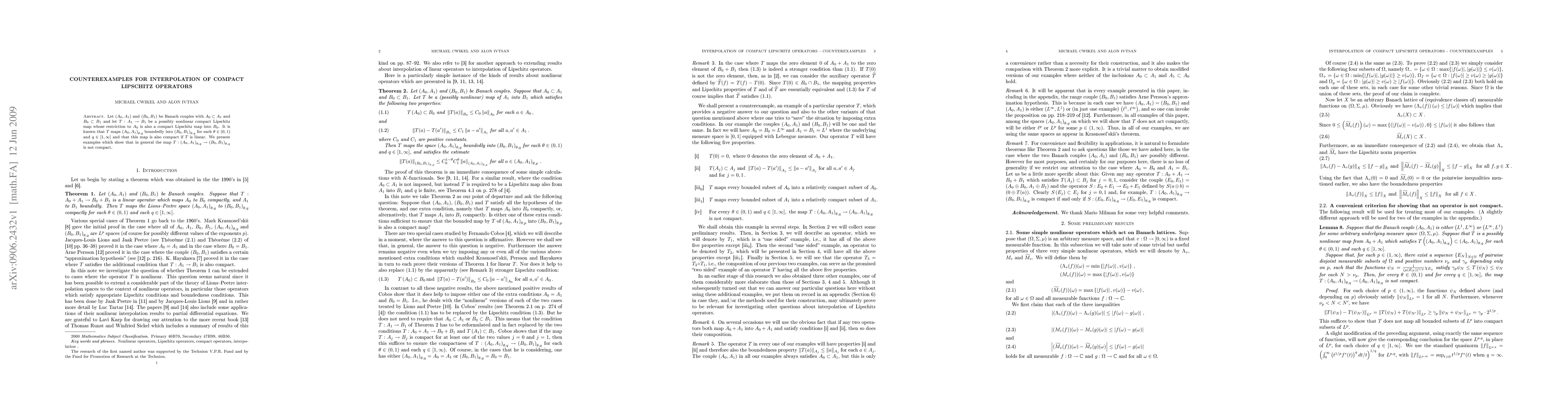 This paper presents counterexamples demonstrating that a compact Lipschitz operator T between Banach couples (A_0,A_1) and (B_0,B_1) does not necessarily map the Lions-Peetre space (A_0,A_1)_\theta,q into (B_0,B_1)_\theta,q compactly for all \theta in (0,1) and q in [1,\infty). This challenges the assumption that such mappings are always compact.