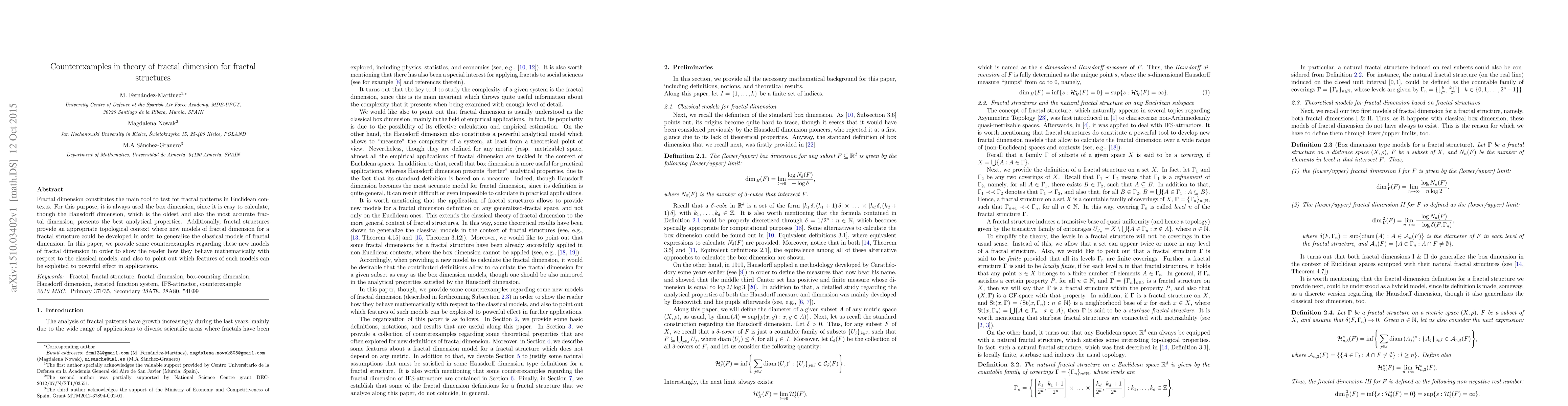 This paper presents counterexamples to highlight discrepancies between new models of fractal dimension for fractal structures and classical models, demonstrating their mathematical behavior and pointing out their practical applications. It emphasizes the importance of the box and Hausdorff dimensions in analyzing fractal patterns.