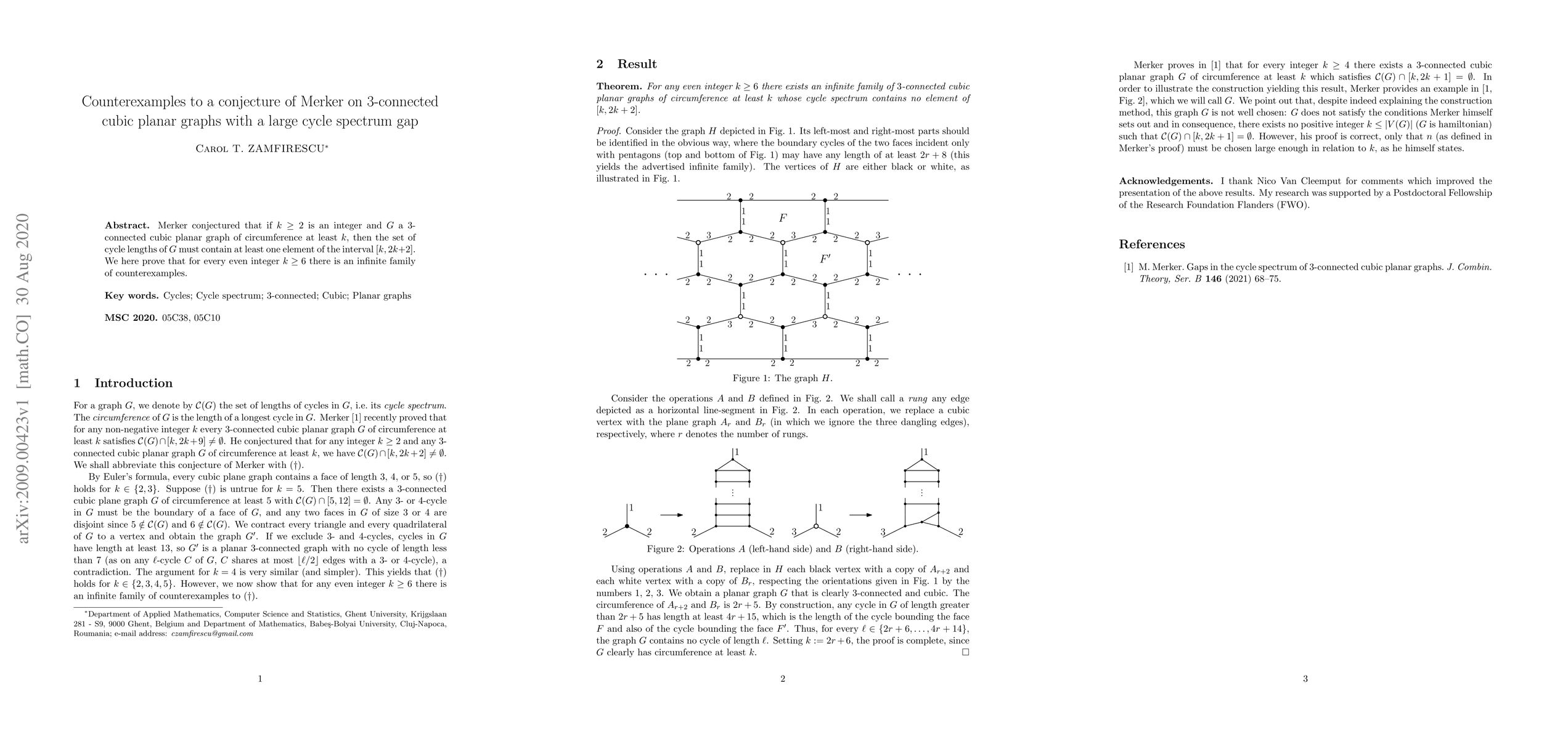 Merker conjectured that if $k \ge 2$ is an integer and $G$ a 3-connected cubic planar graph of circumference at least $k$, then the set of cycle lengths of $G$ must contain at least one element of the interval $[k, 2k+2]$. We here prove that for every even integer $k \ge 6$ there is an infinite family of counterexamples.