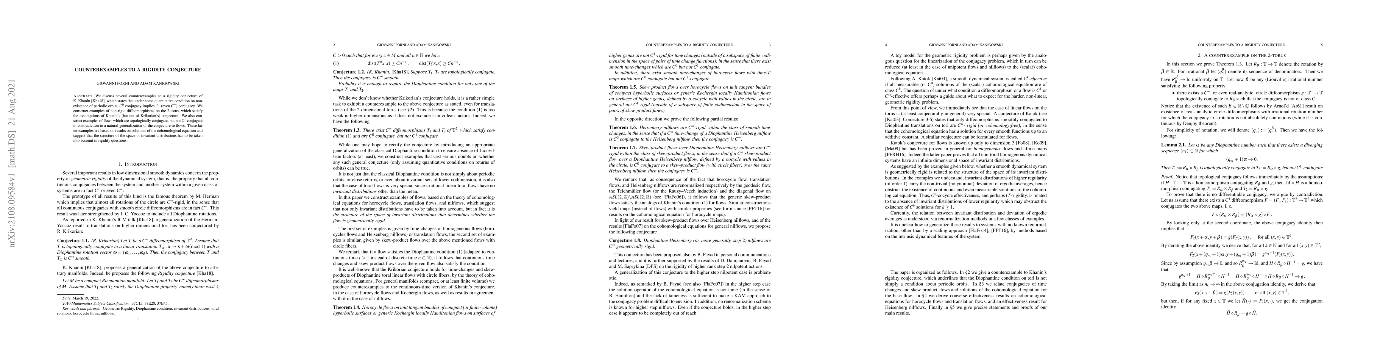 We discuss several counterexamples to a rigidity conjecture of K. Khanin, which states that under some quantitative condition on non-existence of periodic orbits, $C^0$ conjugacy implies $C^1$ (even $C^\infty$) conjugacy. We construct examples of non-rigid diffeomorphisms on the $2$-torus, which satisfy the assumptions of Khanin's (but not of Krikorian's) conjecture. We also construct examples of flows which are topologically conjugate, but not $C^1$ conjugate, in contradiction to a natural generalization of the conjecture to flows. These latter examples are based on results on solutions of the cohomological equation and suggest that the structure of the space of invariant distributions has to be taken into account in rigidity questions.