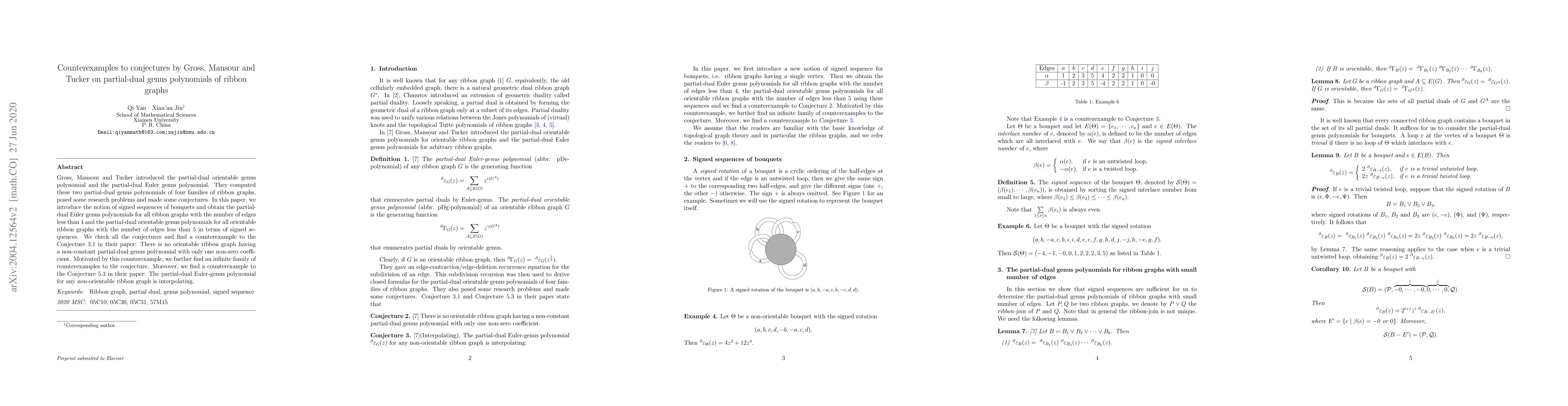 Gross, Mansour and Tucker introduced the partial-dual orientable genus polynomial and the partial-dual Euler genus polynomial. They computed these two partial-dual genus polynomials of four families of ribbon graphs, posed some research problems and made some conjectures. In this paper, we introduce the notion of signed sequences of bouquets and obtain the partial-dual Euler genus polynomials for all ribbon graphs with the number of edges less than 4 and the partial-dual orientable genus polynomials for all orientable ribbon graphs with the number of edges less than 5 in terms of signed sequences. We check all the conjectures and find a counterexample to the Conjecture 3.1 in their paper: There is no orientable ribbon graph having a non-constant partial-dual genus polynomial with only one non-zero coefficient. Motivated by this counterexample, we further find an infinite family of counterexamples to the conjecture. Moreover, we find a counterexample to the Conjecture 5.3 in their paper: The partial-dual Euler-genus polynomial for any non-orientable ribbon graph is interpolating.
