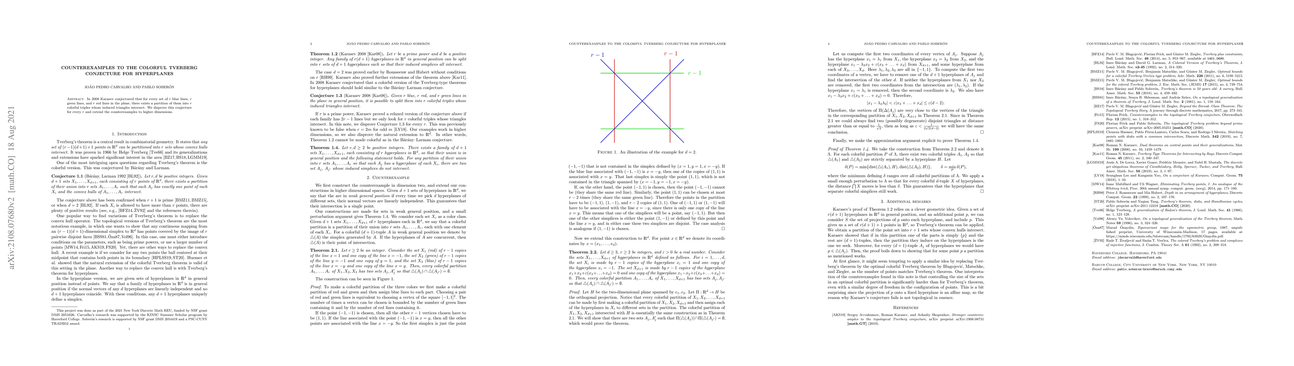The paper disproves Karasev's 2008 Colorful Tverberg Conjecture for hyperplanes in both 2-dimensional and higher-dimensional spaces. It provides counterexamples extending beyond the original conjecture's scope.