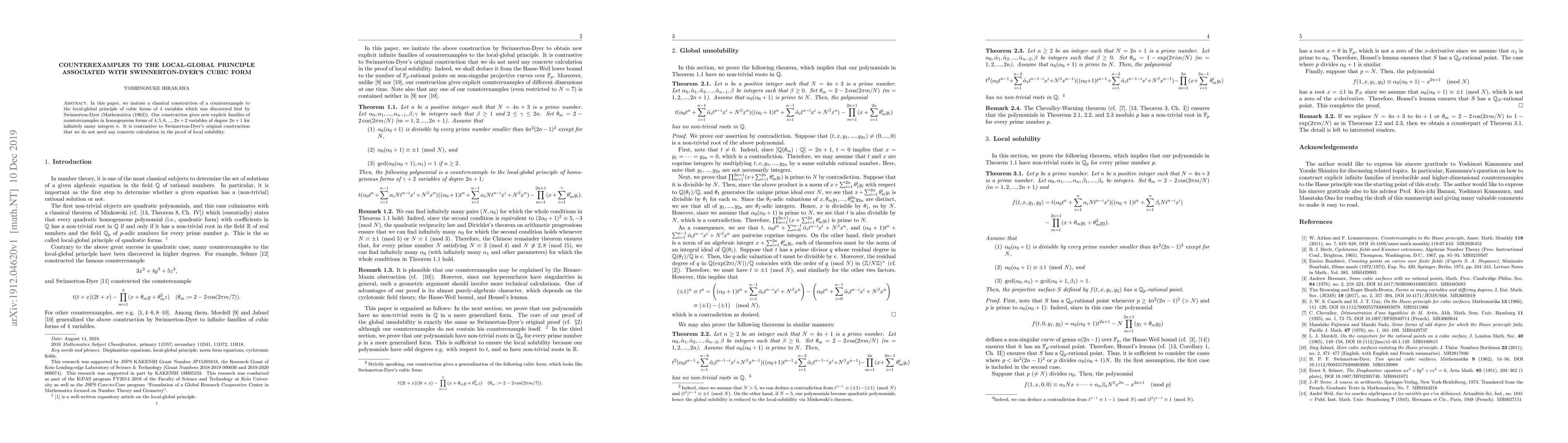 This paper presents new explicit counterexamples to the local-global principle for homogeneous cubic forms of degrees $2n+1$ in $4, 5, ..., 2n+2$ variables, extending beyond Swinnerton-Dyer's original construction without requiring concrete calculations for local solubility.