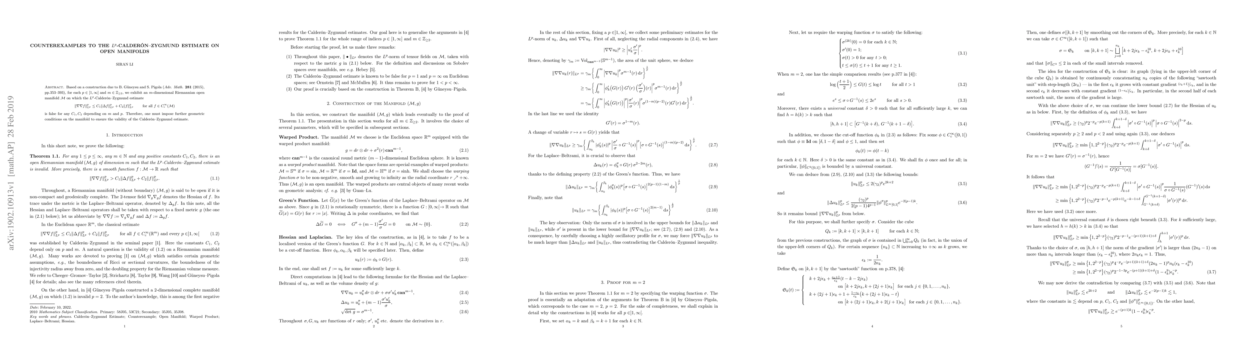This paper constructs counterexamples showing that the $L^p$-Calderón-Zygmund estimate fails on open $m$-dimensional Riemannian manifolds for any $p \in [1,\infty]$ and $m \in \mathbb{Z}_{\geq 2}$, indicating the need for additional geometric conditions on the manifold for the estimate to hold.
