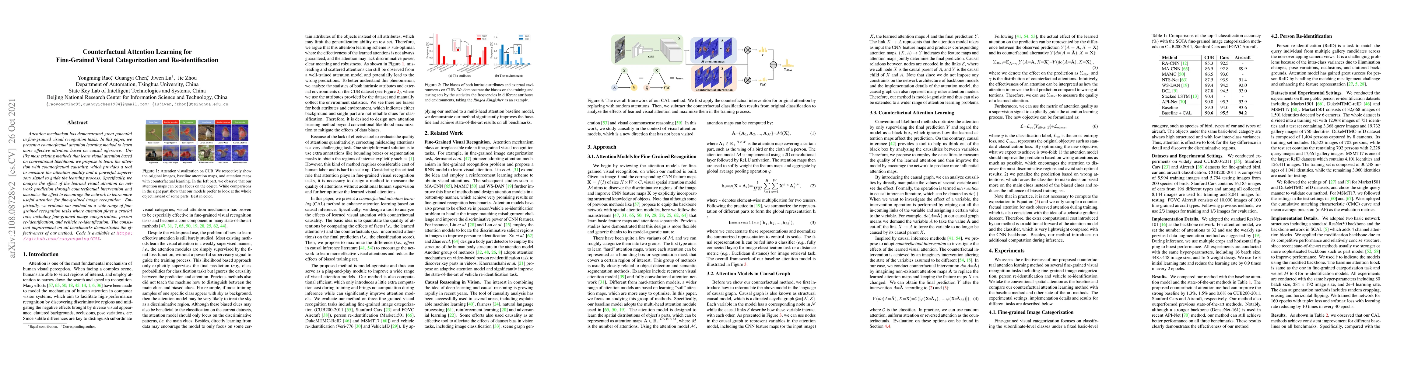 This paper introduces a counterfactual attention learning method for fine-grained visual recognition tasks, utilizing causal inference to enhance visual attention quality. The proposed method leverages counterfactual causality to measure attention effectiveness and guide the learning process, showing consistent improvements across fine-grained image categorization, person, and vehicle re-identification benchmarks.