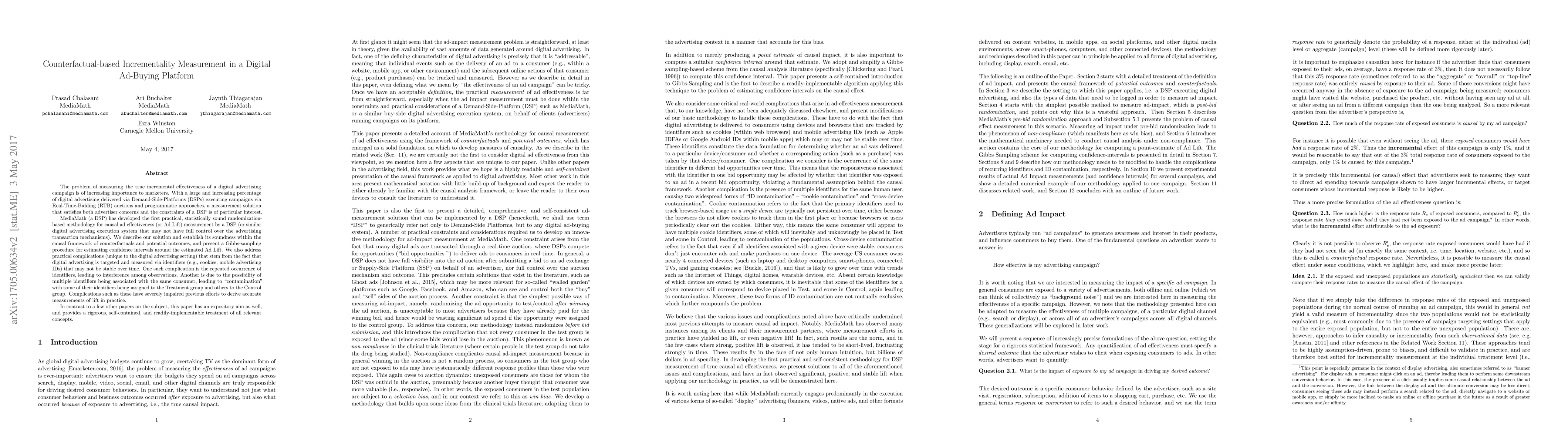 The problem of measuring the true incremental effectiveness of a digital advertising campaign is of increasing importance to marketers. With a large and increasing percentage of digital advertising delivered via Demand-Side-Platforms (DSPs) executing campaigns via Real-Time-Bidding (RTB) auctions and programmatic approaches, a measurement solution that satisfies both advertiser concerns and the constraints of a DSP is of particular interest. MediaMath (a DSP) has developed the first practical, statistically sound randomization-based methodology for causal ad effectiveness (or Ad Lift) measurement by a DSP (or similar digital advertising execution system that may not have full control over the advertising transaction mechanisms). We describe our solution and establish its soundness within the causal framework of counterfactuals and potential outcomes, and present a Gibbs-sampling procedure for estimating confidence intervals around the estimated Ad Lift. We also address practical complications (unique to the digital advertising setting) that stem from the fact that digital advertising is targeted and measured via identifiers (e.g., cookies, mobile advertising IDs) that may not be stable over time. One such complication is the repeated occurrence of identifiers, leading to interference among observations. Another is due to the possibility of multiple identifiers being associated with the same consumer, leading to "contamination" with some of their identifiers being assigned to the Treatment group and others to the Control group. Complications such as these have severely impaired previous efforts to derive accurate measurements of lift in practice. In contrast to a few other papers on the subject, this paper has an expository aim as well, and provides a rigorous, self-contained, and readily-implementable treatment of all relevant concepts.
