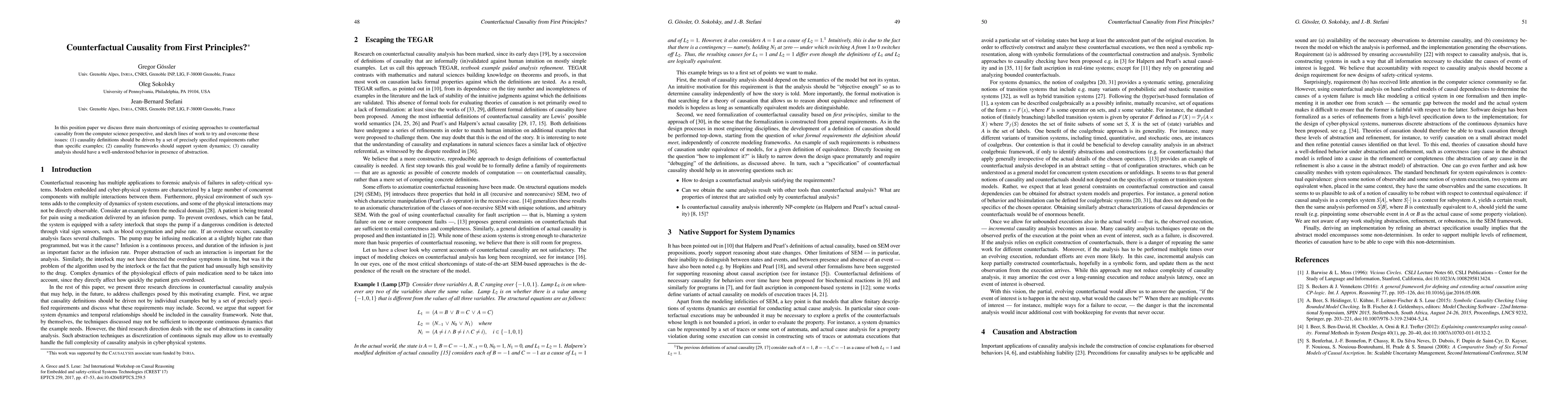 In this position paper we discuss three main shortcomings of existing approaches to counterfactual causality from the computer science perspective, and sketch lines of work to try and overcome these issues: (1) causality definitions should be driven by a set of precisely specified requirements rather than specific examples; (2) causality frameworks should support system dynamics; (3) causality analysis should have a well-understood behavior in presence of abstraction.