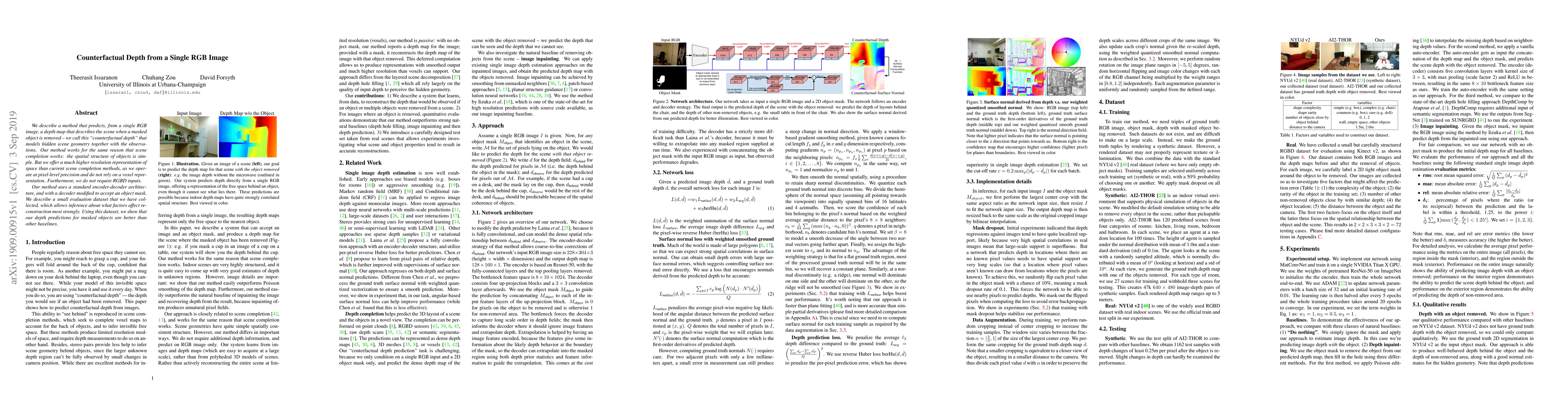 We describe a method that predicts, from a single RGB image, a depth map that describes the scene when a masked object is removed - we call this "counterfactual depth" that models hidden scene geometry together with the observations. Our method works for the same reason that scene completion works: the spatial structure of objects is simple. But we offer a much higher resolution representation of space than current scene completion methods, as we operate at pixel-level precision and do not rely on a voxel representation. Furthermore, we do not require RGBD inputs. Our method uses a standard encoder-decoder architecture, and with a decoder modified to accept an object mask. We describe a small evaluation dataset that we have collected, which allows inference about what factors affect reconstruction most strongly. Using this dataset, we show that our depth predictions for masked objects are better than other baselines.