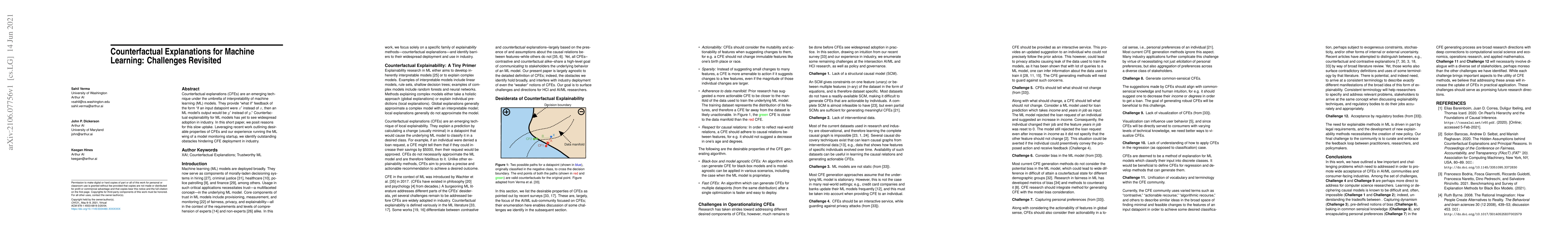 This paper explores the challenges preventing the adoption of counterfactual explanations (CFEs) in machine learning model interpretability, identifying obstacles such as lack of standardized properties and practical deployment issues based on industry experience.
