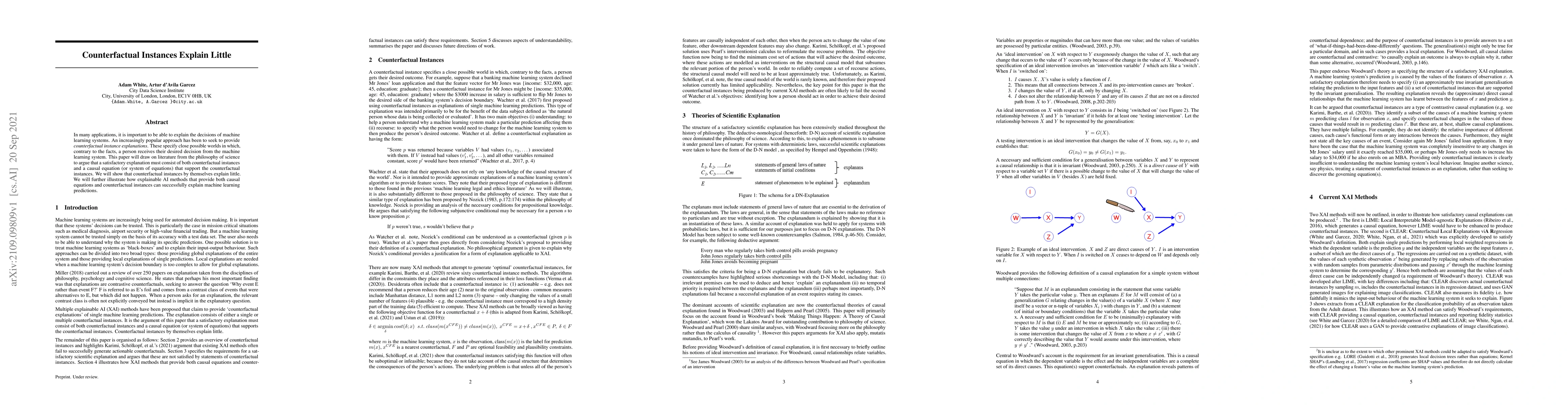 In many applications, it is important to be able to explain the decisions of machine learning systems. An increasingly popular approach has been to seek to provide \emph{counterfactual instance explanations}. These specify close possible worlds in which, contrary to the facts, a person receives their desired decision from the machine learning system. This paper will draw on literature from the philosophy of science to argue that a satisfactory explanation must consist of both counterfactual instances and a causal equation (or system of equations) that support the counterfactual instances. We will show that counterfactual instances by themselves explain little. We will further illustrate how explainable AI methods that provide both causal equations and counterfactual instances can successfully explain machine learning predictions.