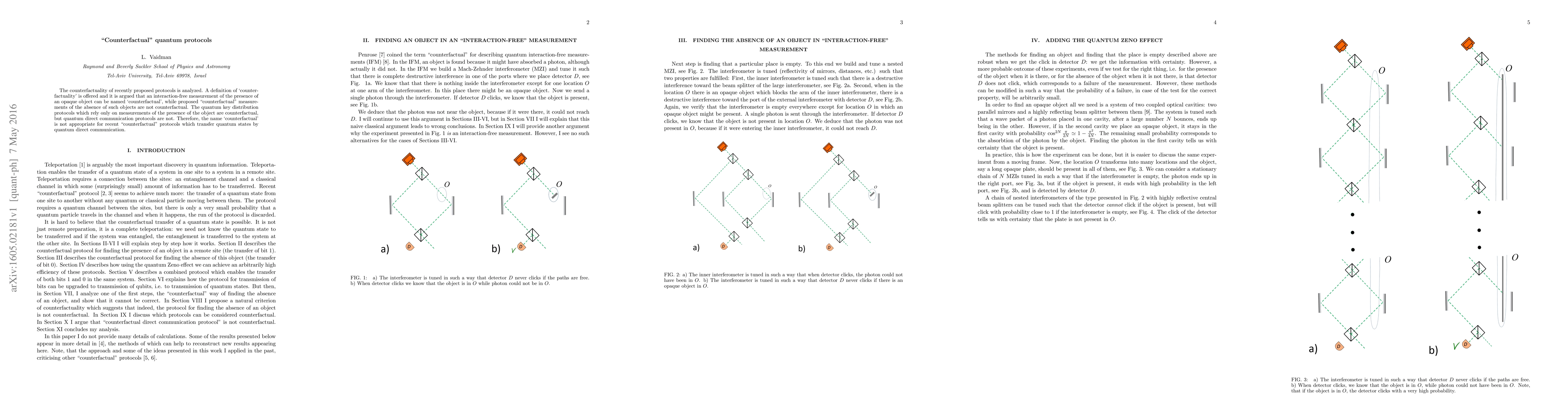 The counterfactuality of recently proposed protocols is analyzed. A definition of `counterfactuality' is offered and it is argued that an interaction-free measurement of the presence of an opaque object can be named `counterfactual', while proposed "counterfactual" measurements of the absence of such objects are not counterfactual. The quantum key distribution protocols which rely only on measurements of the presence of the object are counterfactual, but quantum direct communication protocols are not. Therefore, the name `counterfactual' is not appropriate for recent "counterfactual" protocols which transfer quantum states by quantum direct communication.