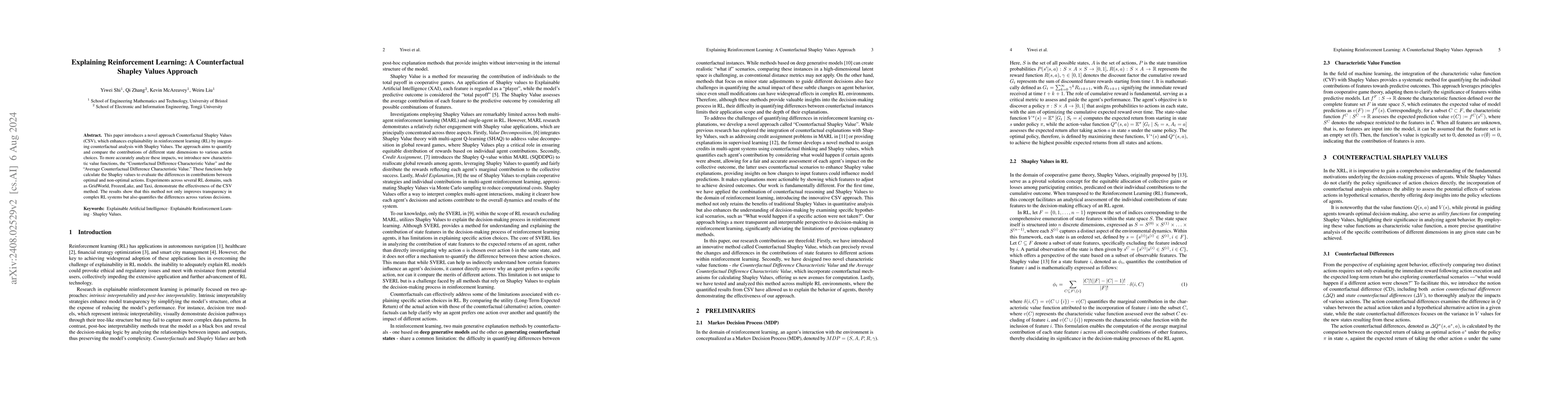 This paper proposes Counterfactual Shapley Values (CSV) to improve explainability in reinforcement learning by combining counterfactual analysis with Shapley Values, evaluating state dimension contributions to action choices and demonstrating effectiveness across various RL domains. The introduced characteristic value functions enhance the accuracy of contribution comparisons between optimal and non-optimal actions.