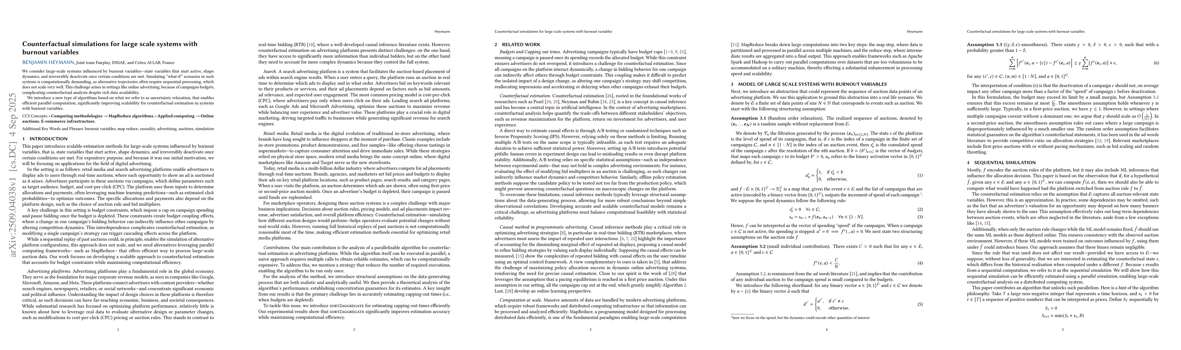 We consider large-scale systems influenced by burnout variables - state variables that start active, shape dynamics, and irreversibly deactivate once certain conditions are met. Simulating what-if scenarios in such systems is computationally demanding, as alternative trajectories often require sequential processing, which does not scale very well. This challenge arises in settings like online advertising, because of campaigns budgets, complicating counterfactual analysis despite rich data availability. We introduce a new type of algorithms based on what we refer to as uncertainty relaxation, that enables efficient parallel computation, significantly improving scalability for counterfactual estimation in systems with burnout variables.