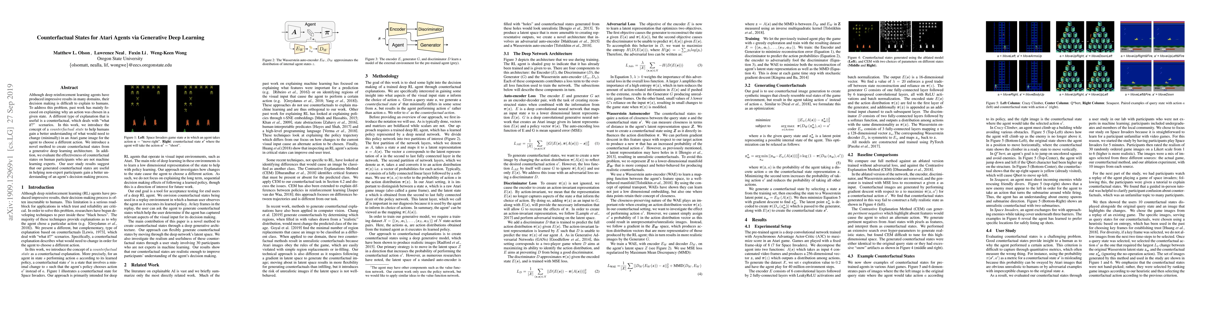 This paper proposes a method using generative deep learning to create counterfactual states for Atari agents, aiming to explain "what if?" scenarios in decision making. The study finds that these counterfactual states help non-expert participants understand the agent's decision-making process better.
