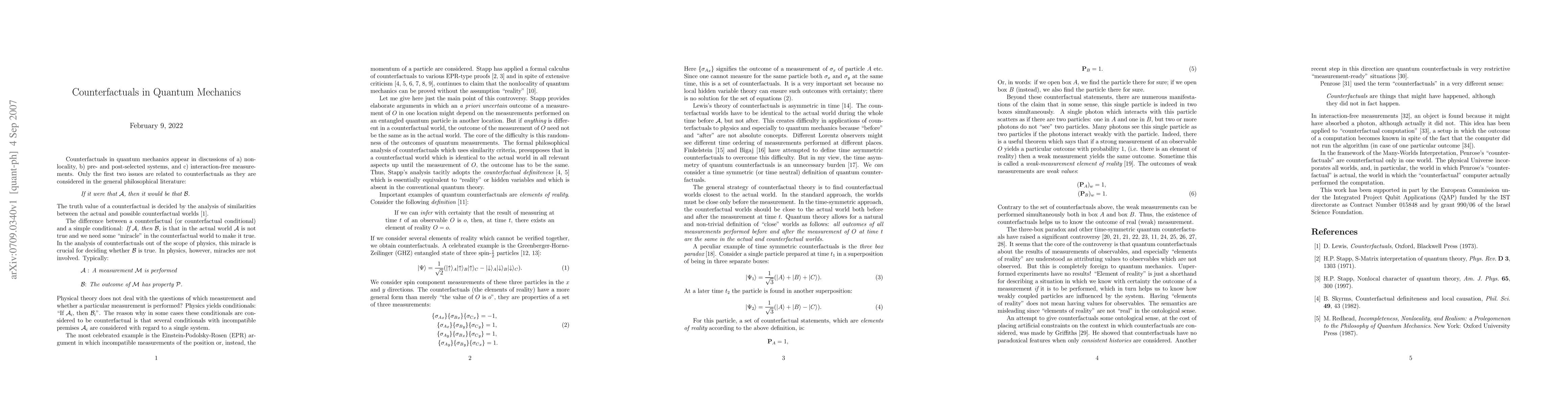A review of the term "counterfactuals" in various contexts of quantum mechanics.