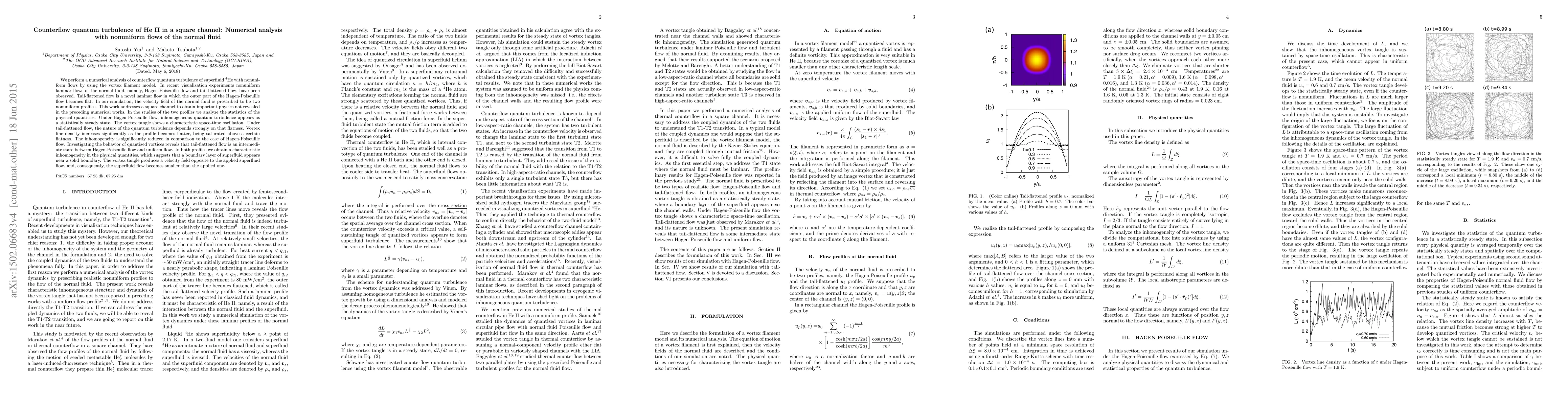 This paper numerically analyzes counterflow quantum turbulence in superfluid 4He within a square channel using the vortex filament model, focusing on nonuniform flows of the normal fluid. It reveals distinct behaviors under Hagen-Poiseuille and tail-flattened flows, showing that the latter significantly reduces inhomogeneity and increases vortex line density, suggesting a boundary layer effect near solid boundaries.