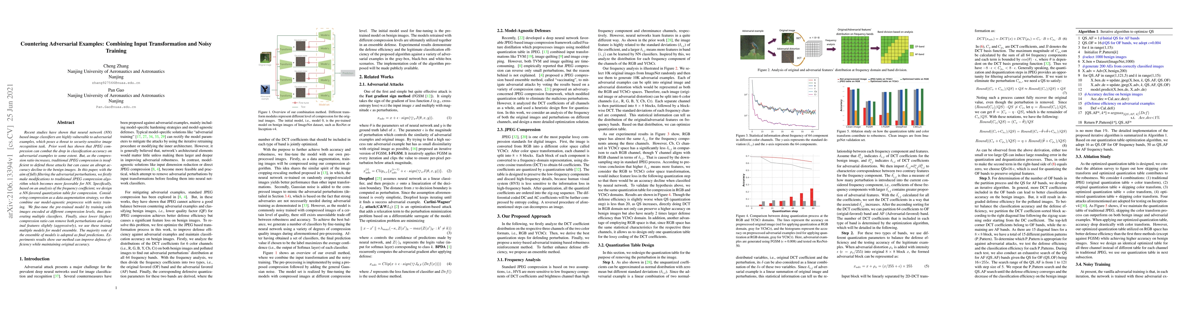 This paper proposes a method combining modified JPEG compression and noisy training to defend neural network image classifiers against adversarial examples. The approach uses a NN-favored quantization table and trains multiple classifiers at different compression levels, which are then ensembled to improve defense efficiency while preserving original accuracy.