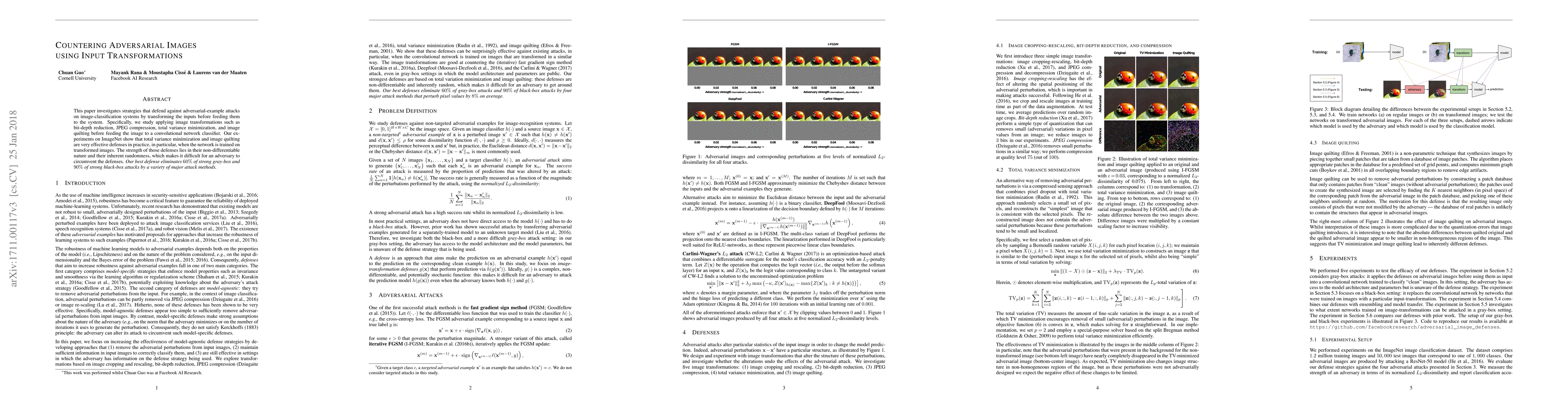 Researchers found that transforming images before feeding them to a neural network classifier can effectively defend against adversarial attacks, with methods like total variance minimization and image quilting showing strong defenses.