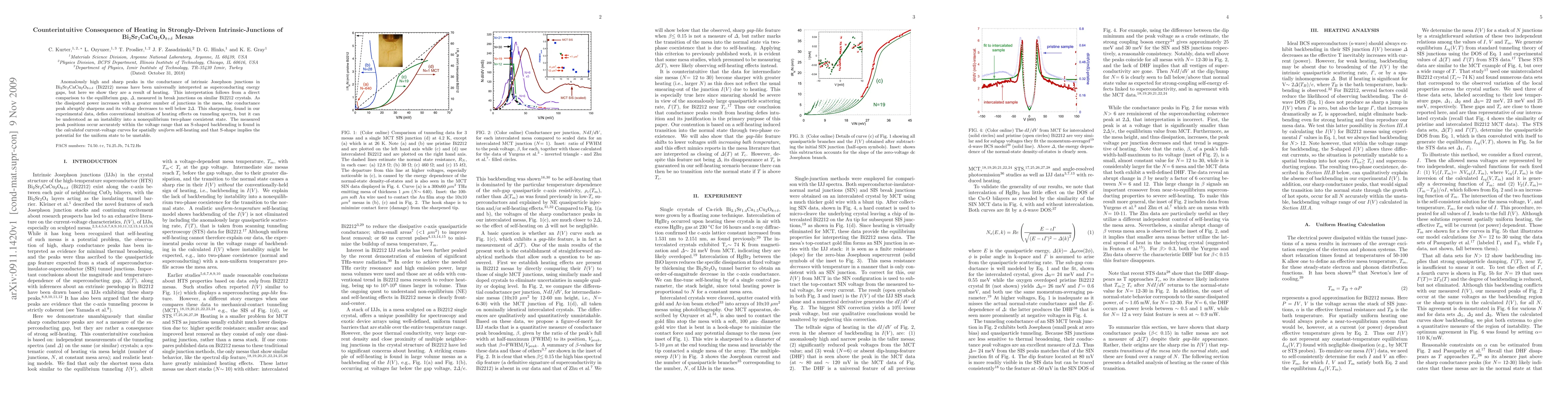 This paper reveals that high conductance peaks in Bi$_{2}$Sr$_{2}$CaCu$_{2}$O$_{8+\delta}$ mesas, previously attributed to superconducting energy gaps, are actually due to heating effects. The study finds that increased dissipated power leads to sharper conductance peaks, challenging conventional heating intuitions, and suggests this behavior arises from an instability into a nonequilibrium two-phase coexistent state.