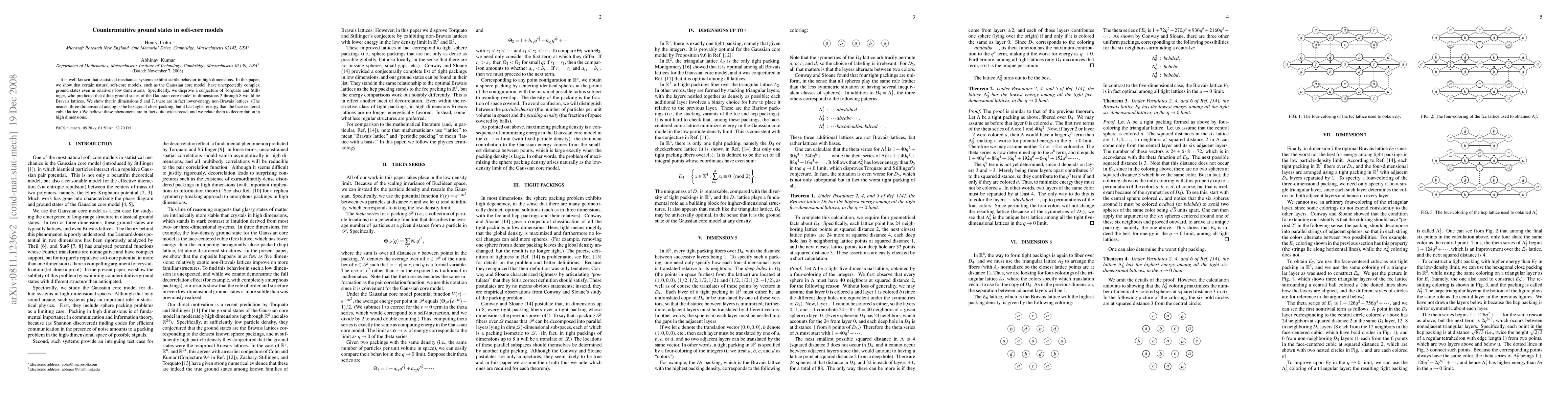 It is well known that statistical mechanics systems exhibit subtle behavior in high dimensions. In this paper, we show that certain natural soft-core models, such as the Gaussian core model, have unexpectedly complex ground states even in relatively low dimensions. Specifically, we disprove a conjecture of Torquato and Stillinger, who predicted that dilute ground states of the Gaussian core model in dimensions 2 through 8 would be Bravais lattices. We show that in dimensions 5 and 7, there are in fact lower-energy non-Bravais lattices. (The nearest three-dimensional analog is the hexagonal close-packing, but it has higher energy than the face-centered cubic lattice.) We believe these phenomena are in fact quite widespread, and we relate them to decorrelation in high dimensions.