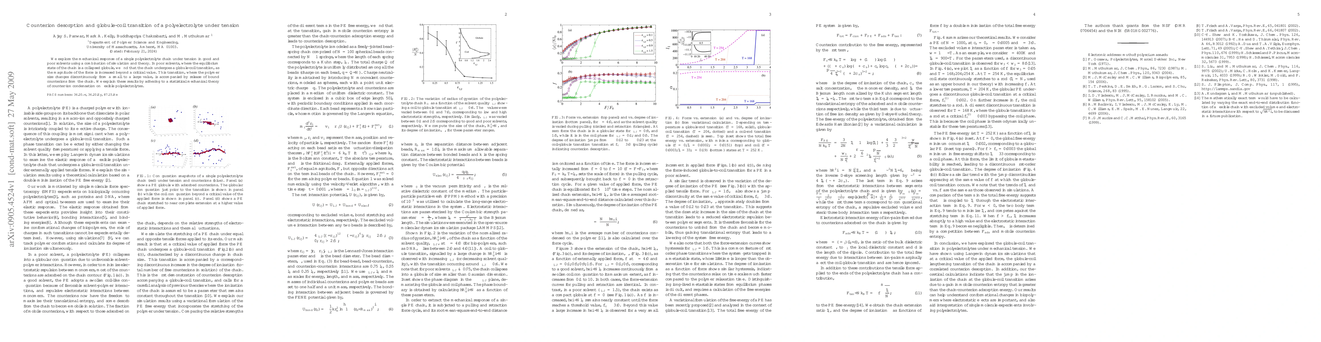 This study investigates the mechanical behavior of a polyelectrolyte chain under tension in different solvent conditions, revealing a globule-coil transition in poor solvents accompanied by counterion desorption, explained through a statistical mechanical theory of counter-ion condensation.