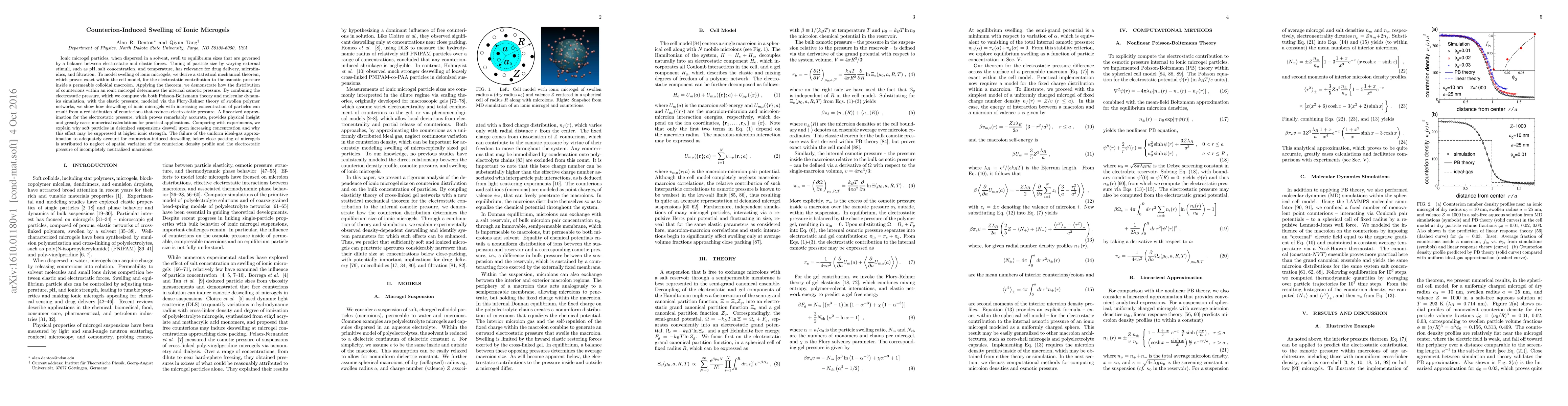 This paper develops a statistical mechanical theorem to model the swelling of ionic microgels, showing how counterion distribution affects internal osmotic pressure. It combines electrostatic and elastic pressures to explain deswelling in concentrated suspensions, revealing the limitations of ideal-gas approximations in accounting for counterion effects.