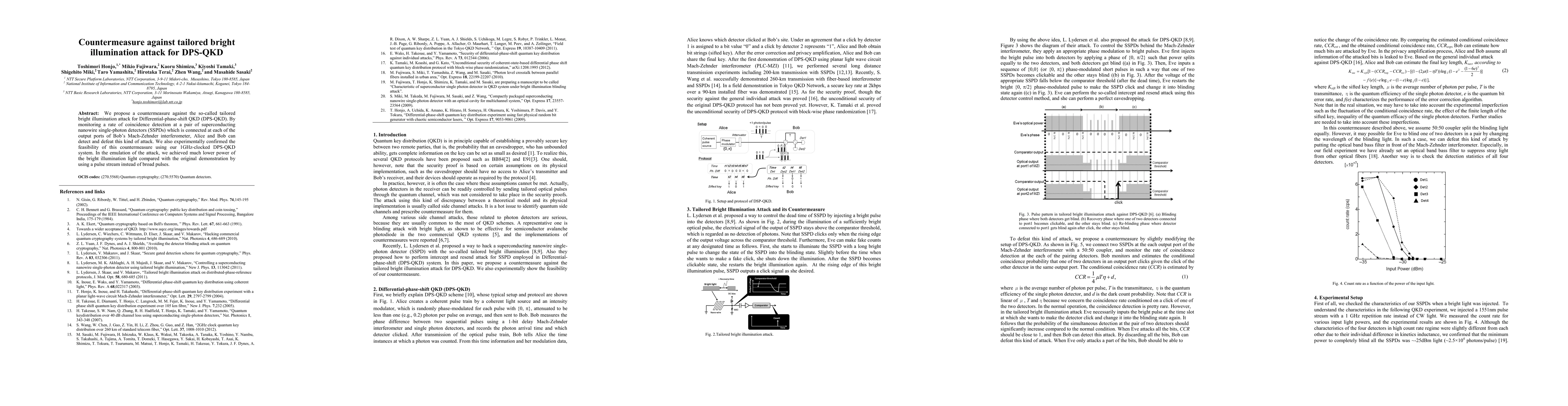 We propose a countermeasure against the so-call tailored bright illumination attacl dor Differential-Phase-Shift QKD (DPS-QKD). By Monitoring a rate of coincidence detection at a pair of superconducting nanowire single photon detectors (SSPDs) which is connected at each of the output ports of Bob's Mach-Zehnder interferometer, Alice and Bob can detect and defeat this kind of attack.