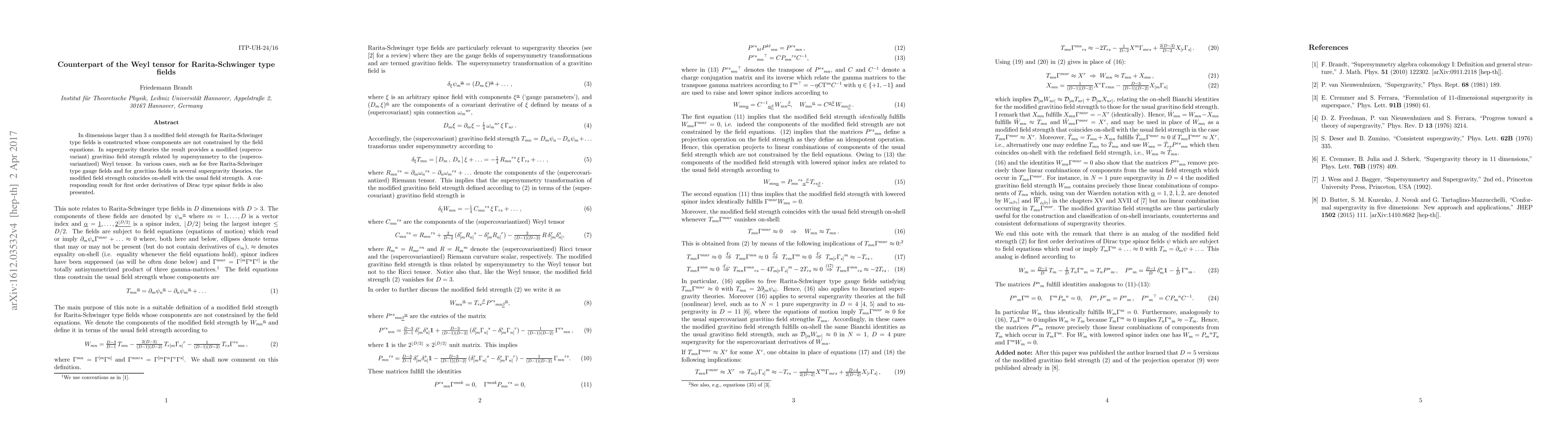 Researchers developed a new field strength for Rarita-Schwinger type fields in dimensions larger than 3, which relates to the Weyl tensor through supersymmetry.