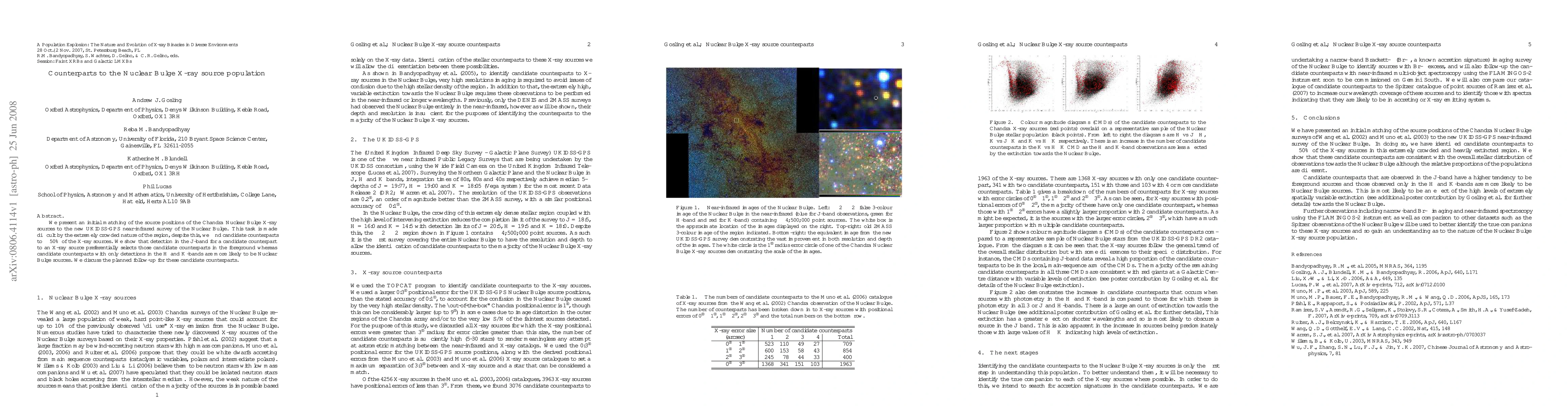 We present an initial matching of the source positions of the Chandra Nuclear Bulge X-ray sources to the new UKIDSS-GPS near-infrared survey of the Nuclear Bulge. This task is made difficult by the extremely crowded nature of the region, despite this, we find candidate counterparts to ~50% of the X-ray sources. We show that detection in the J-band for a candidate counterpart to an X-ray source preferentially selects those candidate counterparts in the foreground whereas candidate counterparts with only detections in the H and K-bands are more likely to be Nuclear Bulge sources. We discuss the planned follow-up for these candidate counterparts.