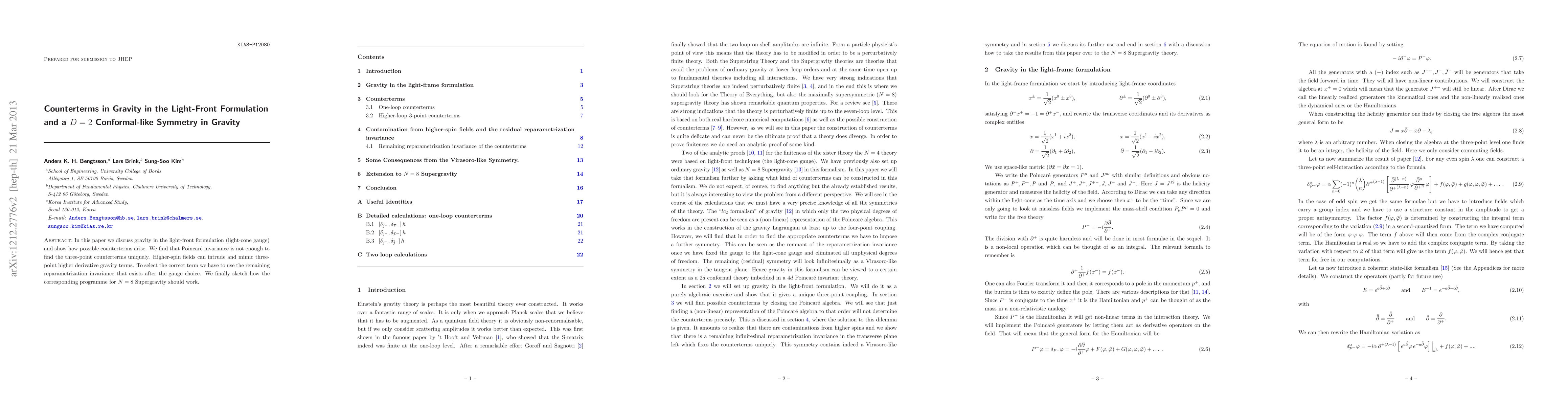 This paper explores gravity in the light-front formulation and identifies potential counterterms, noting that Poincaré invariance alone is insufficient. It leverages residual reparametrization invariance post-gauge choice to uniquely determine the correct three-point counterterms, and outlines a similar approach for N=8 Supergravity.