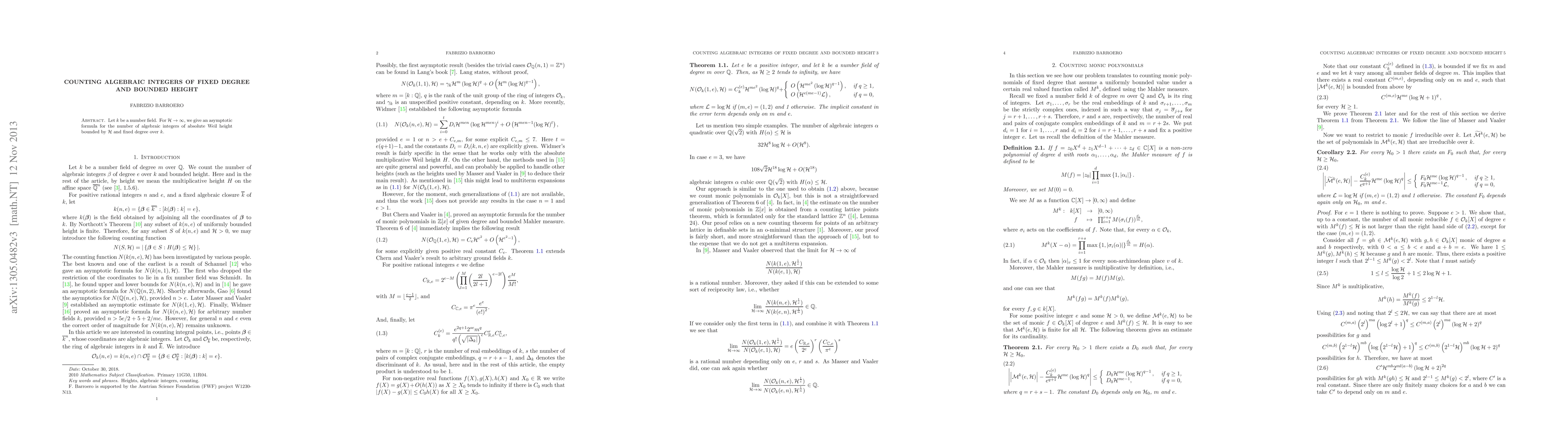 Let $k$ be a number field. For $\mathcal{H}\rightarrow \infty$, we give an asymptotic formula for the number of algebraic integers of absolute Weil height bounded by $\mathcal{H}$ and fixed degree over $k$.