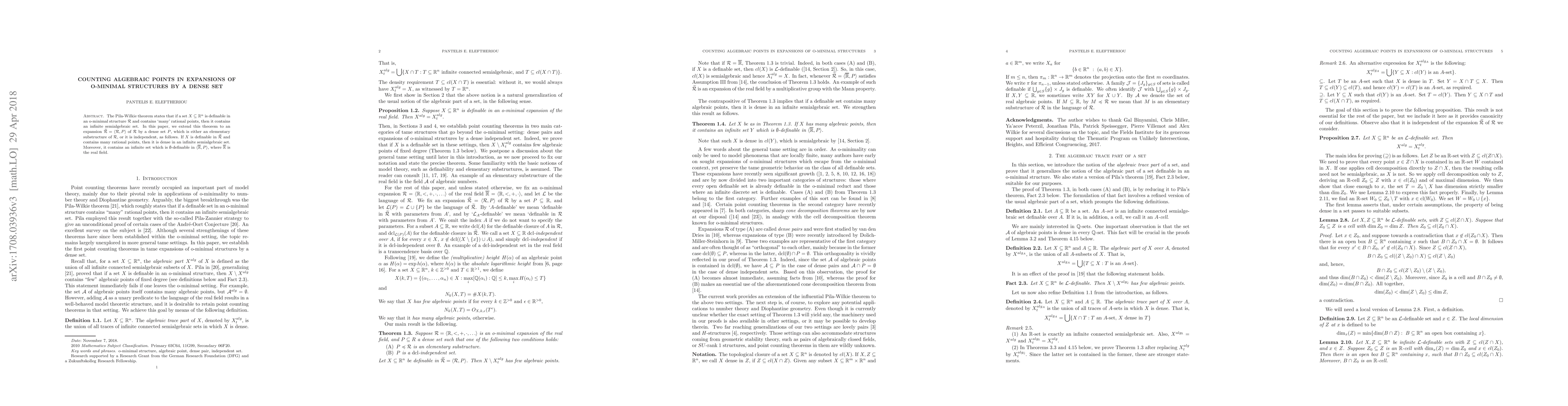 This paper extends the Pila-Wilkie theorem to expansions of o-minimal structures with dense sets, proving that definable sets with many rational points contain infinite semialgebraic sets and specific subsets that are empty-definable in an expanded field.