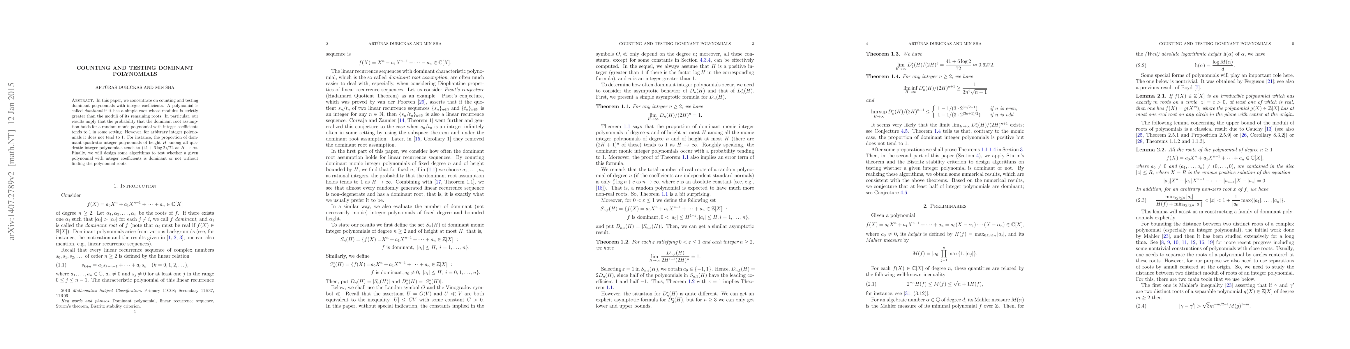 The paper introduces new criteria for identifying dominant polynomials and develops algorithms to test for dominance without root computation, contributing to computational number theory.