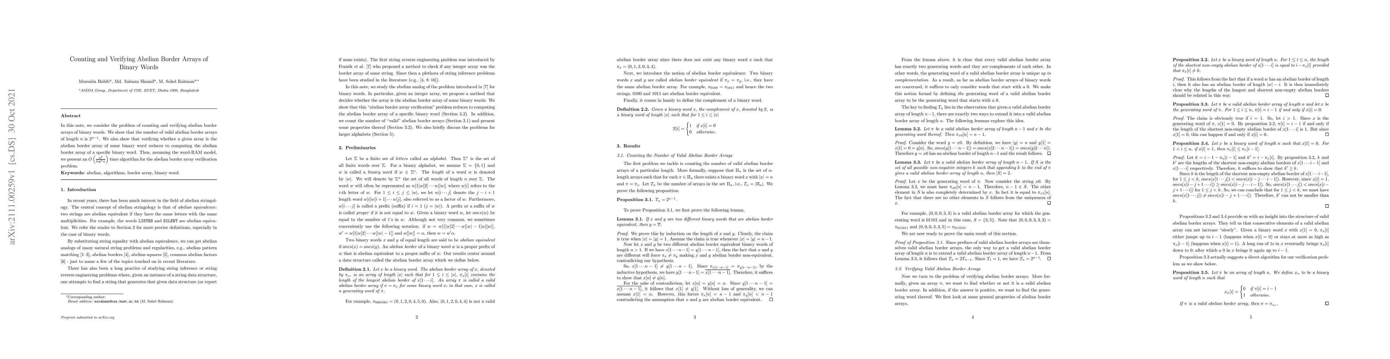 The paper shows that the number of valid abelian border arrays of length n is 2^(n-1), and provides an O(n^2 / log^2 n) time algorithm for verifying these arrays.