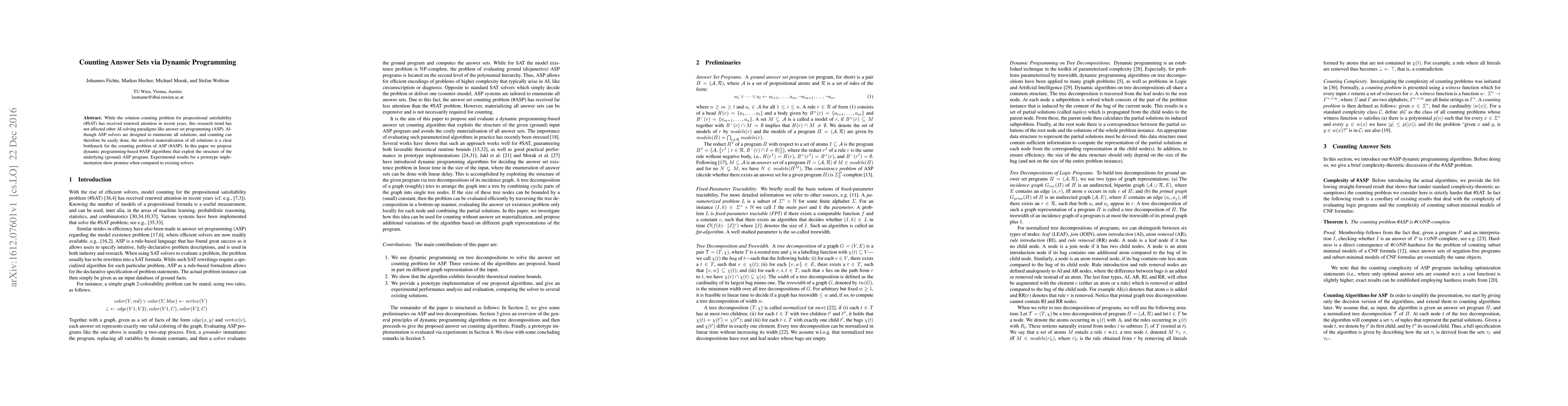 This paper proposes dynamic programming-based algorithms to efficiently count answer sets in answer set programming (#ASP), addressing the bottleneck of materializing all solutions. Experimental results indicate these methods outperform existing solvers.