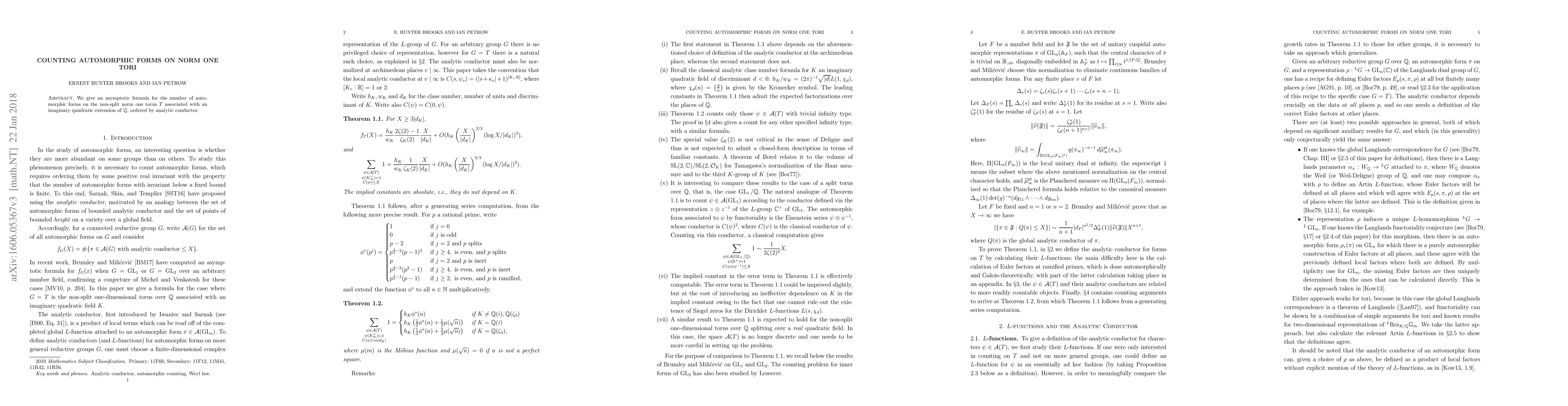 This paper presents an asymptotic formula for the count of automorphic forms on non-split norm one tori linked with imaginary quadratic extensions of Q, organized by analytic conductor.