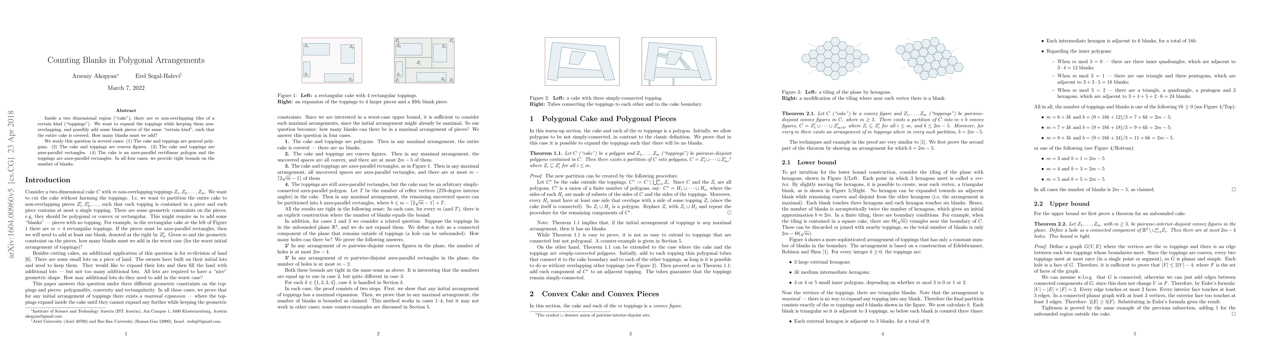 This research paper investigates the minimum number of blank tiles needed to cover a 2D region (cake) with non-overlapping tiles of another kind, considering different cases such as general polygons, convex figures, and axes-parallel rectangles. The study provides tight bounds on the number of blanks in each case.