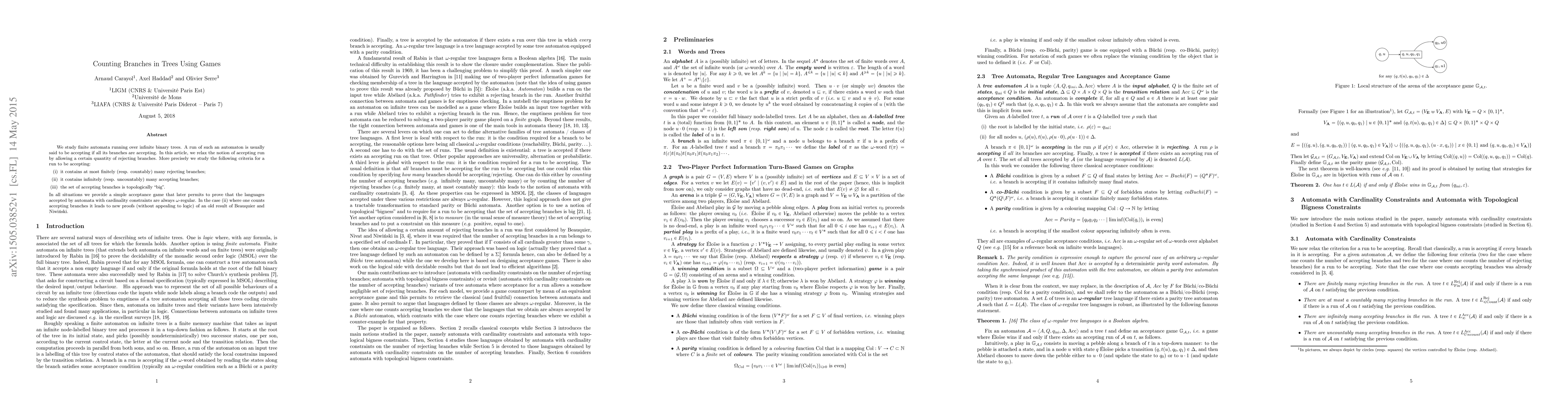 We study finite automata running over infinite binary trees. A run of such an automaton is usually said to be accepting if all its branches are accepting. In this article, we relax the notion of accepting run by allowing a certain quantity of rejecting branches. More precisely we study the following criteria for a run to be accepting: - it contains at most finitely (resp countably) many rejecting branches; - it contains infinitely (resp uncountably) many accepting branches; - the set of accepting branches is topologically "big". In all situations we provide a simple acceptance game that later permits to prove that the languages accepted by automata with cardinality constraints are always $\omega$-regular. In the case (ii) where one counts accepting branches it leads to new proofs (without appealing to logic) of an old result of Beauquier and Niwinski.