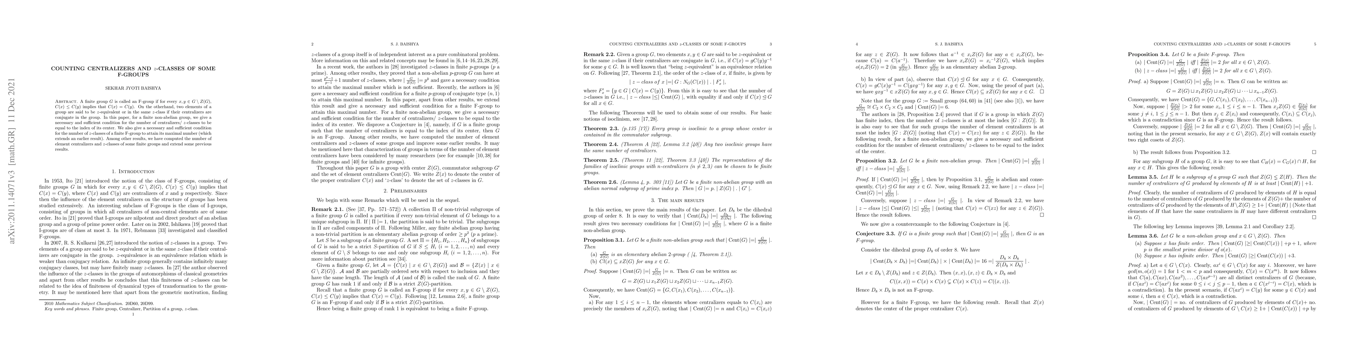 This paper investigates finite F-groups where every pair of non-central elements with equal centralizers are identical. It establishes conditions for the equality between the number of centralizers/z-classes and the index of the group's center, extends previous findings on the maximal number of z-classes, and computes these quantities for specific groups.