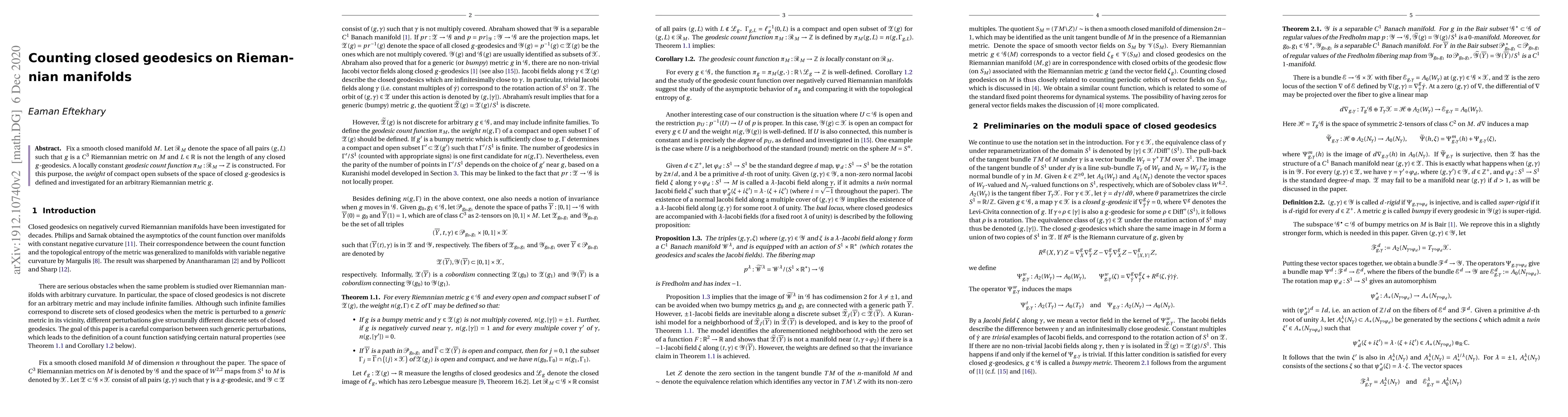 This paper constructs a locally constant geodesic count function on the space of Riemannian metrics on a smooth closed manifold, while defining and investigating the weight of compact open subsets of the closed geodesic space.